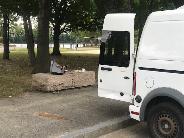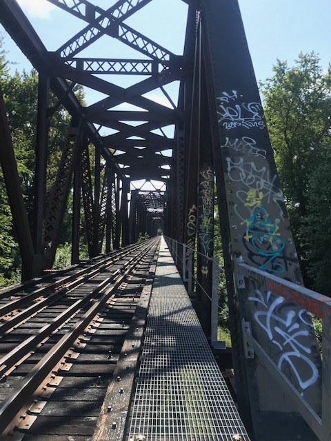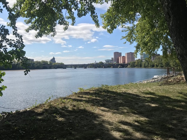 In the morning I found a park by the river on Google Maps and hoped it wasn’t sketchy. I’ve heard from many friends that Hartford has decent parts, bad parts, and worse parts, but hell if I know which are which. Riverside Park seemed very nice and clean and was almost empty when I arrived aside from a few dog walkers, rowers, and groundskeepers. Compared to the park I stopped in to look up directions while getting gas in Waterbury this was pretty stellar. Made some delicious eggs and tea, then took a walk along the river and watched a train go by rights as I was wondering ‘Hmm, could this still be active or is that part of the trail?’
