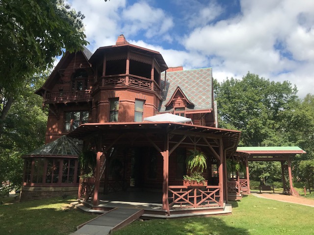Visited the Mark Twain house after breakfast. They had some exhibits in the visitor center which told me more about Twain’s life than did the tour guide, but the real highlight was the house interior. No photos are allowed indoors but it is spectacularly designed. The exterior architecture captures Clemens beloved riverboats, and the interior features a plant room, the most beautiful bee wallpaper, Tiffany co. designed spaces, Arab inspired ceiling designs, and gorgeous, intentional details at every turn.