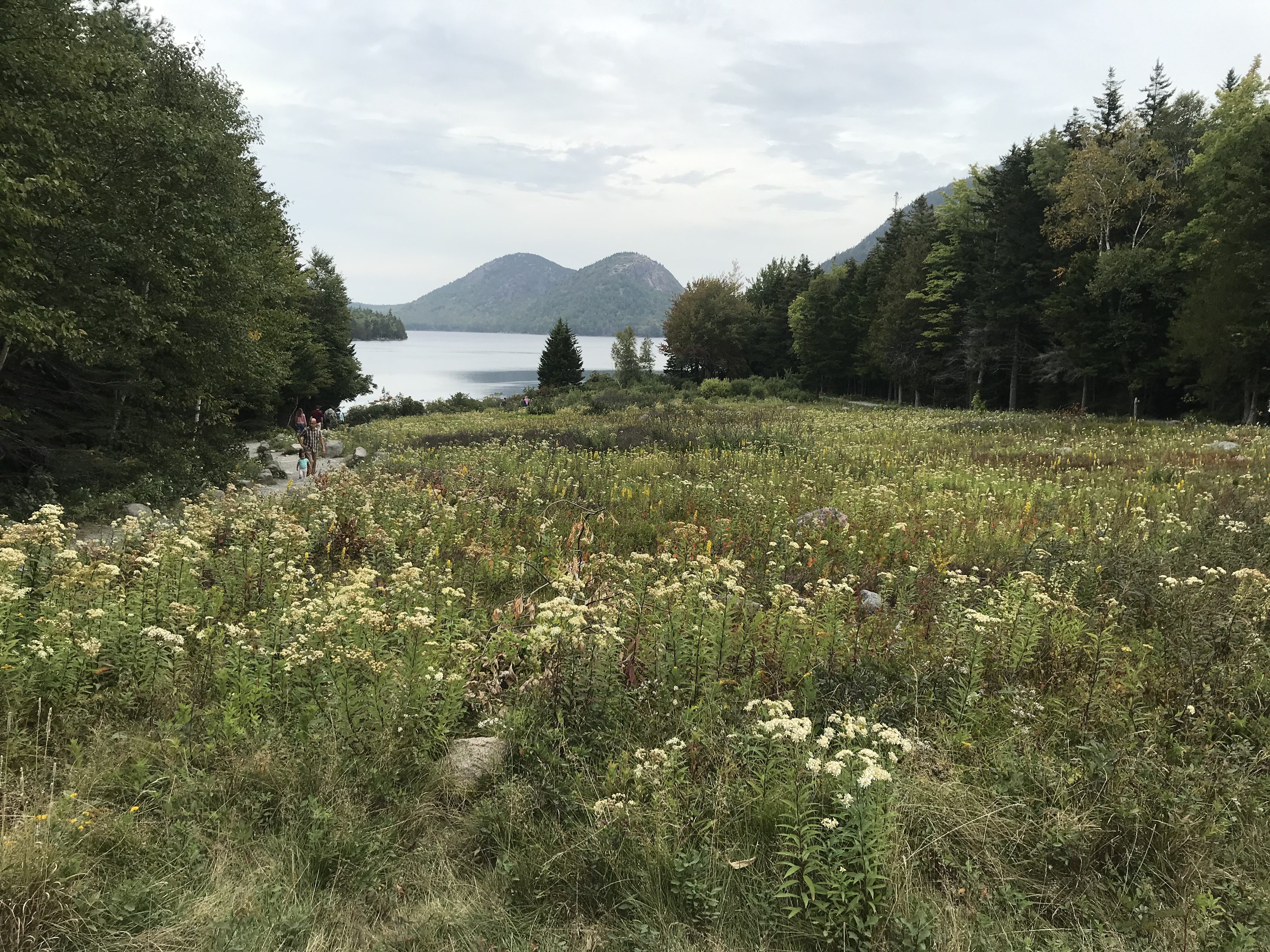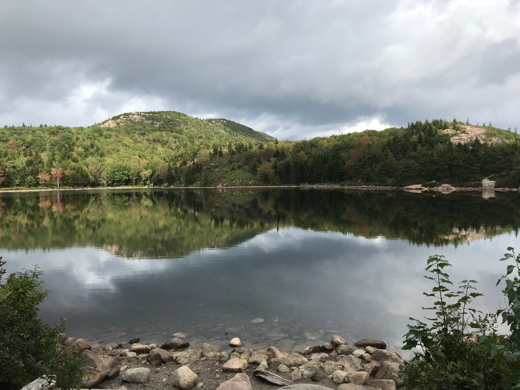 On my first day in the park I took the visitor shuttle to Jordan Pond, which is one of many popular destinations in the park due to having walks for many difficulty levels from a stroll around the pond to climbing more or trekking to other sites, but also because its Jordan Pond House has a tradition of serving delicious popover tea on the lawn overlooking the lovely pond and the Bubble hills.
