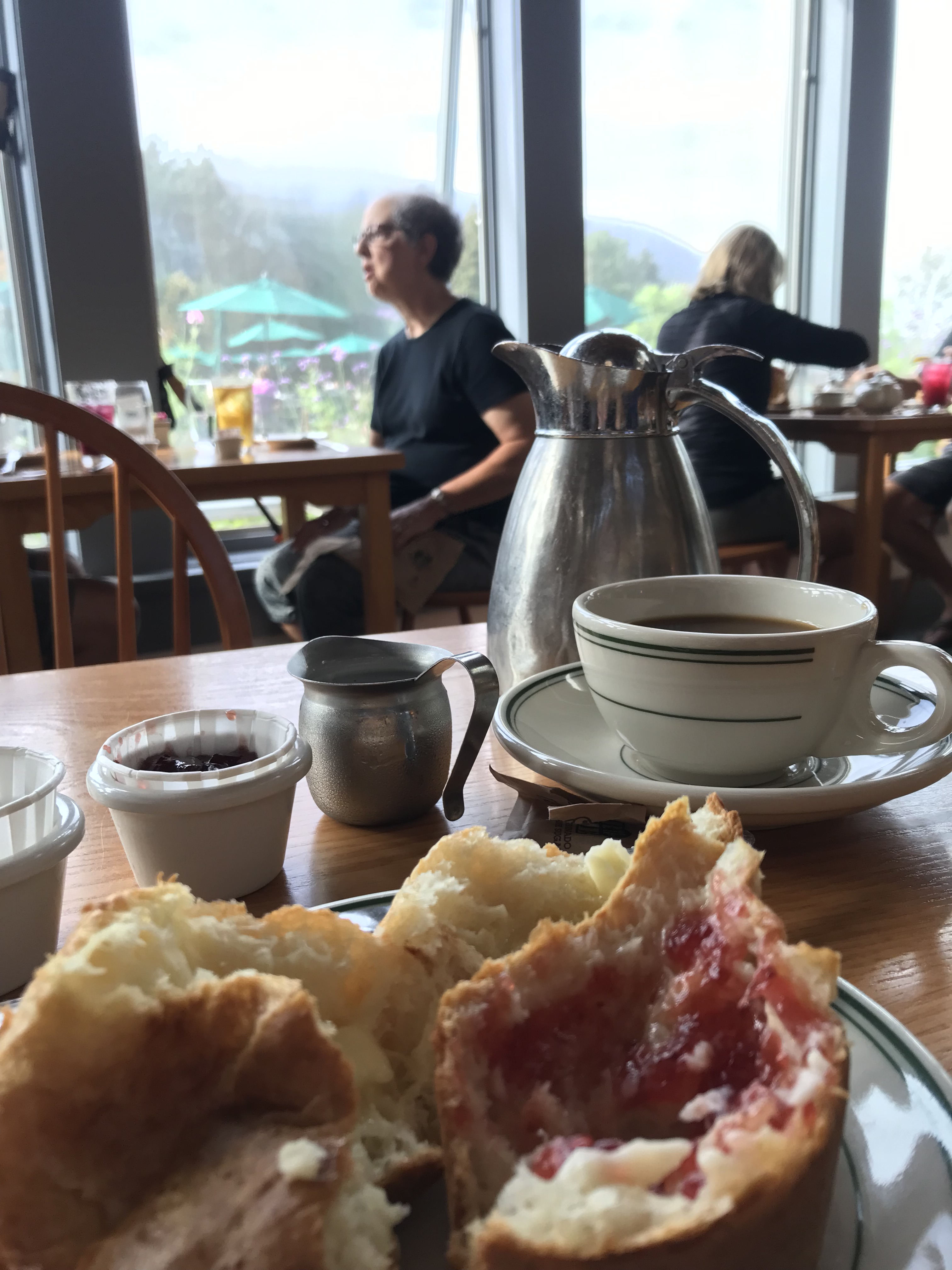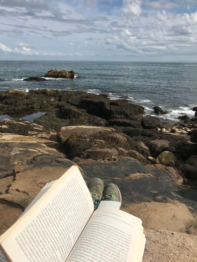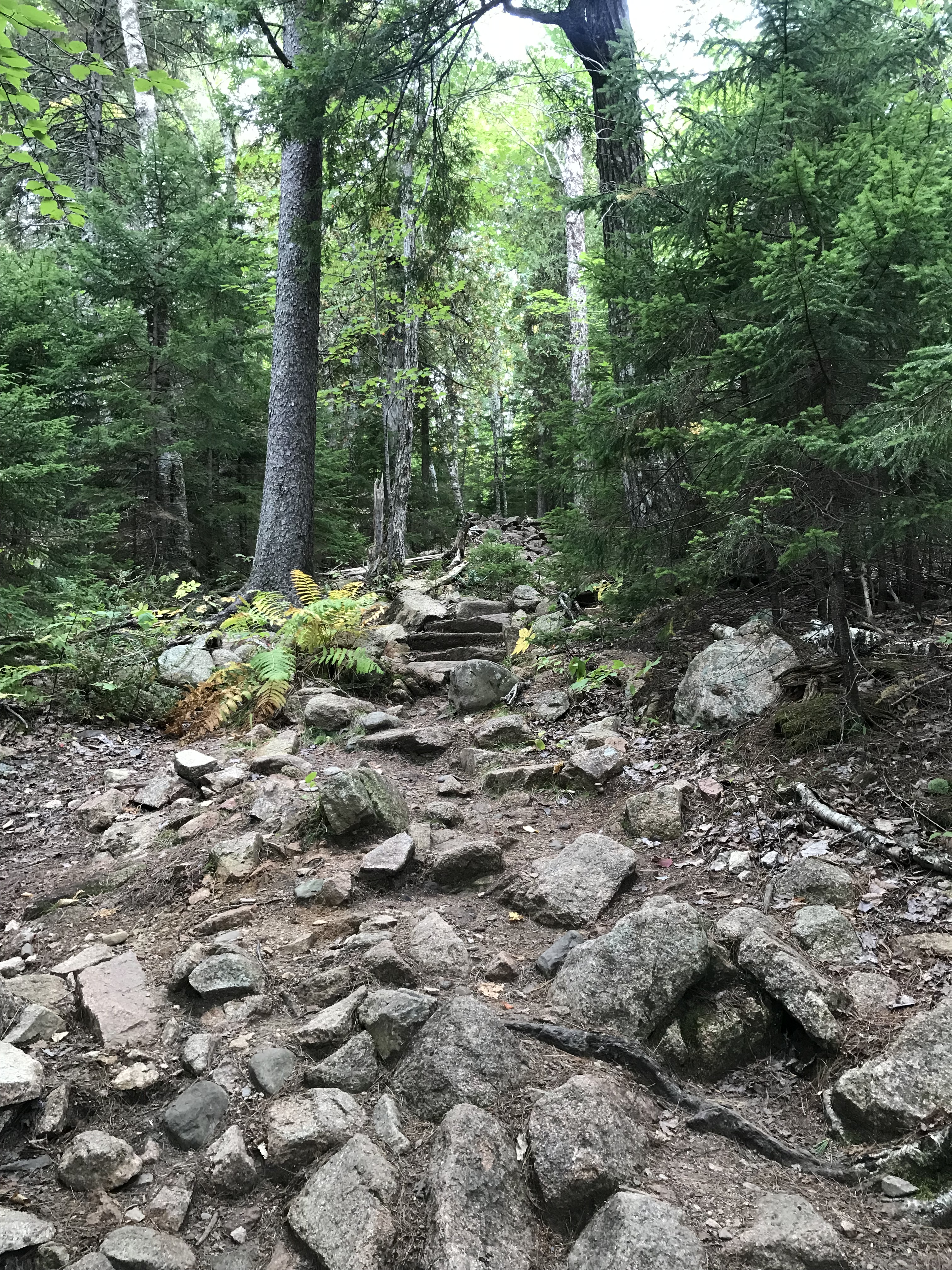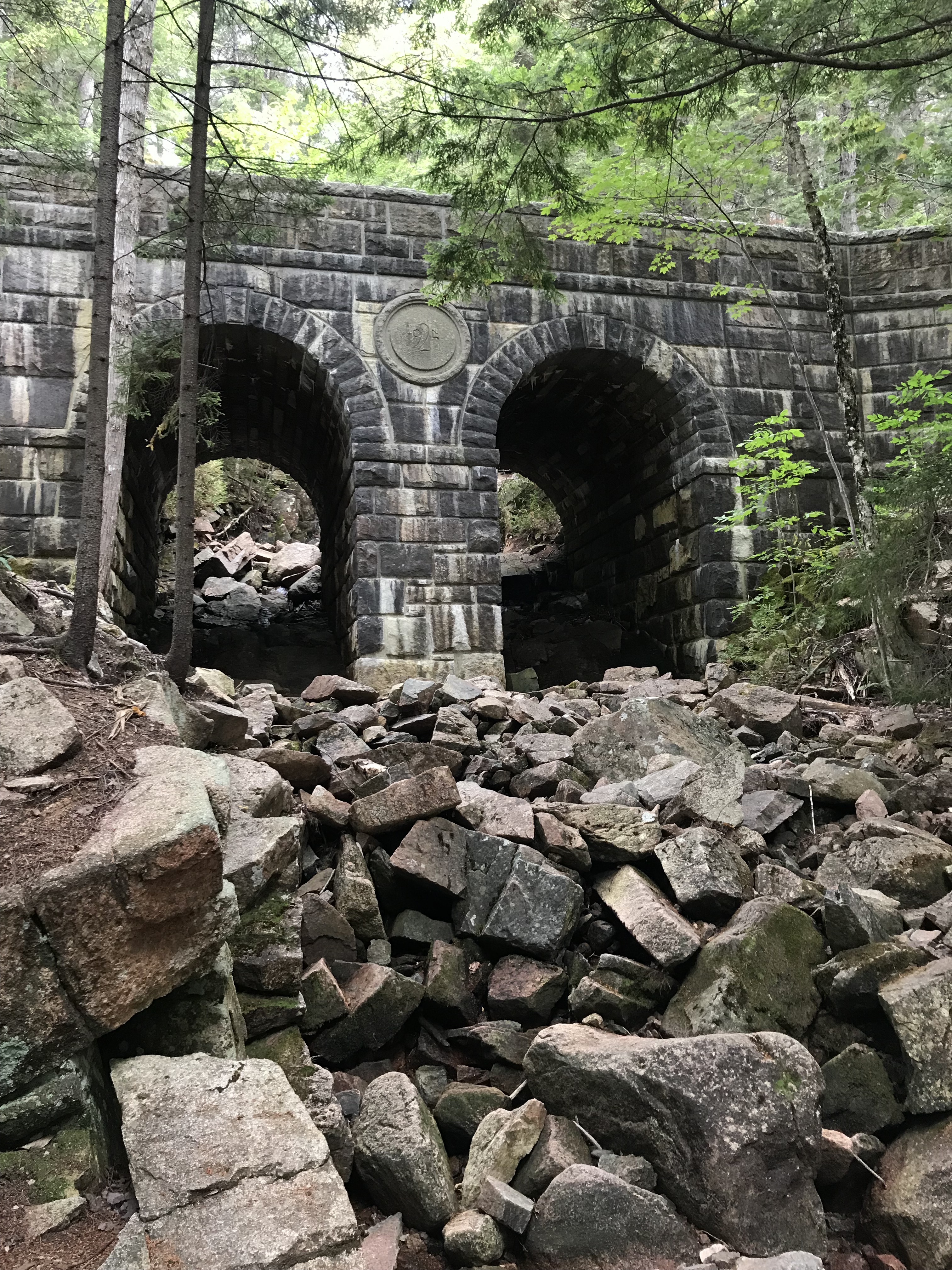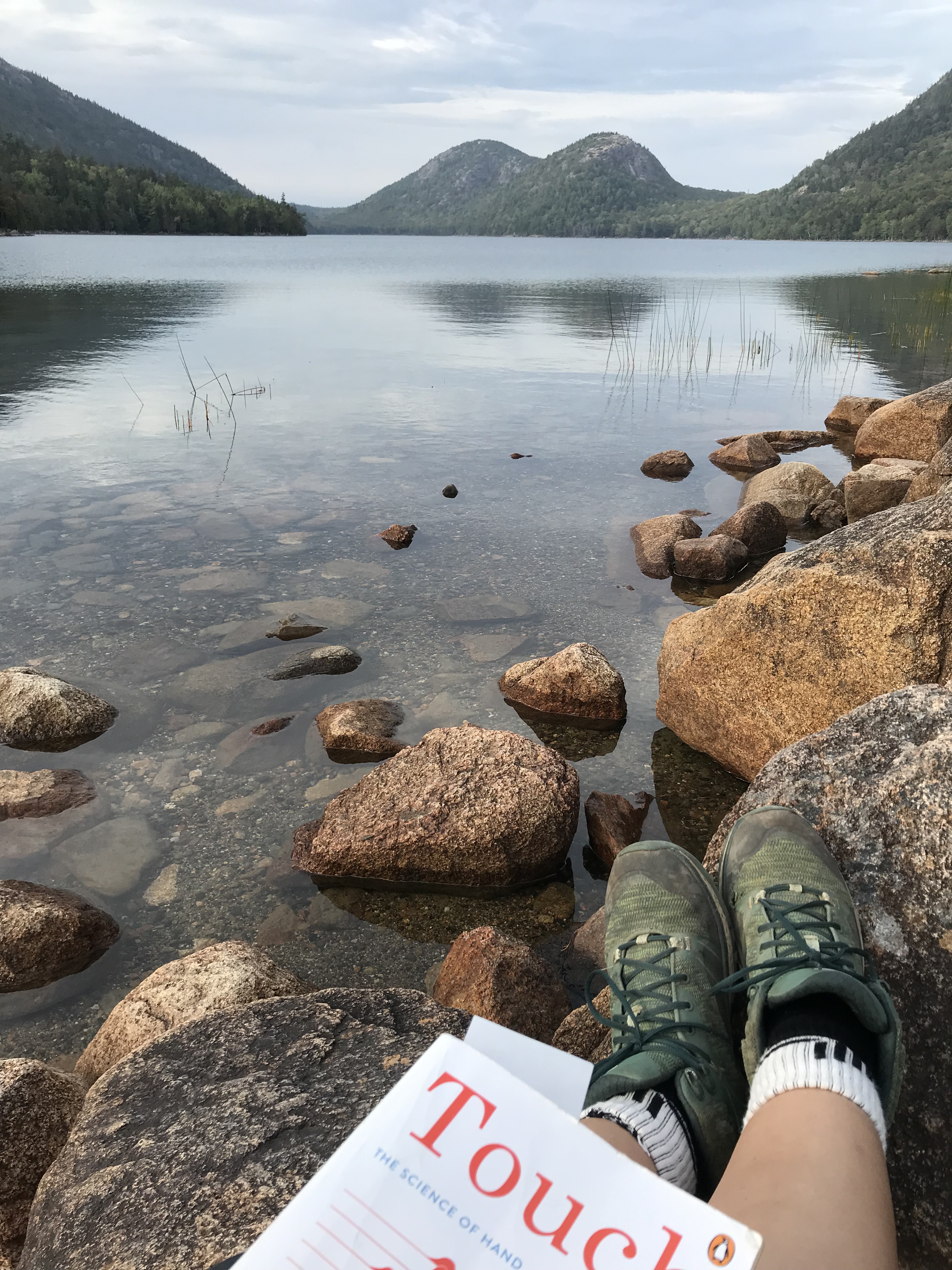 I hiked up to the top of the nearby Penobscot mountain for views of the pond and to earn myself some popover calories. The climb was tough in a few places but mainly because it was so hot and humid, not that it was a particularly hard path. One leg I was planning to take was closed for restoration so I had to tack on a little distance and go around another way, which was just as well. The route takes you past one of the scenic carriage road bridges along the way, and the breeze at the top was very much welcome. Down at the bottom again I got my fill of treats (should have waited for outside seating but still good) and read for a while by the pond until the bus returned.