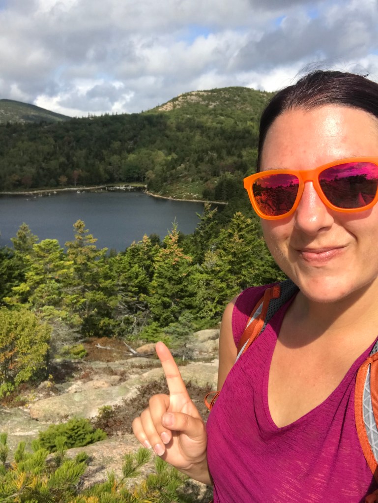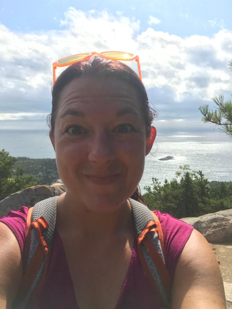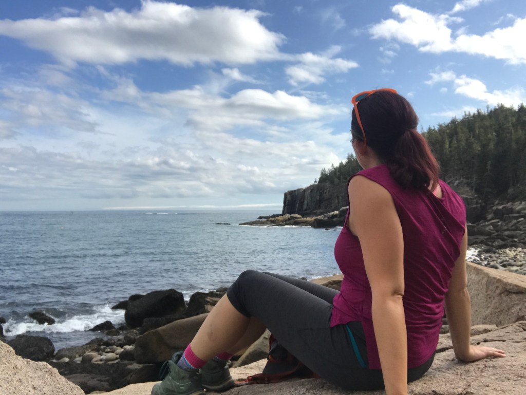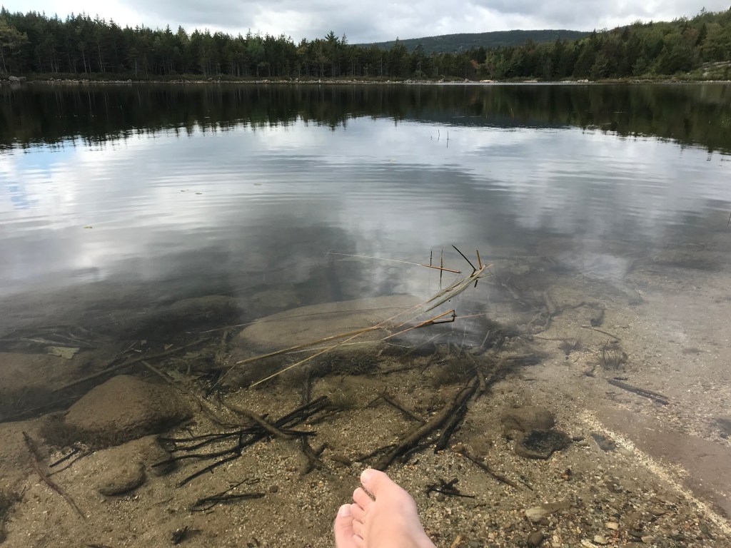 Parked at Sand Beach and hiked up the Beehive trail, which is one that’s steep enough on the cliffs to need rebar ladders in places, and then down to the Bowl pond for cheese, almond and chocolate lunch and to cool my feet in the water. I would have just jumped in had there not been so many people around.
