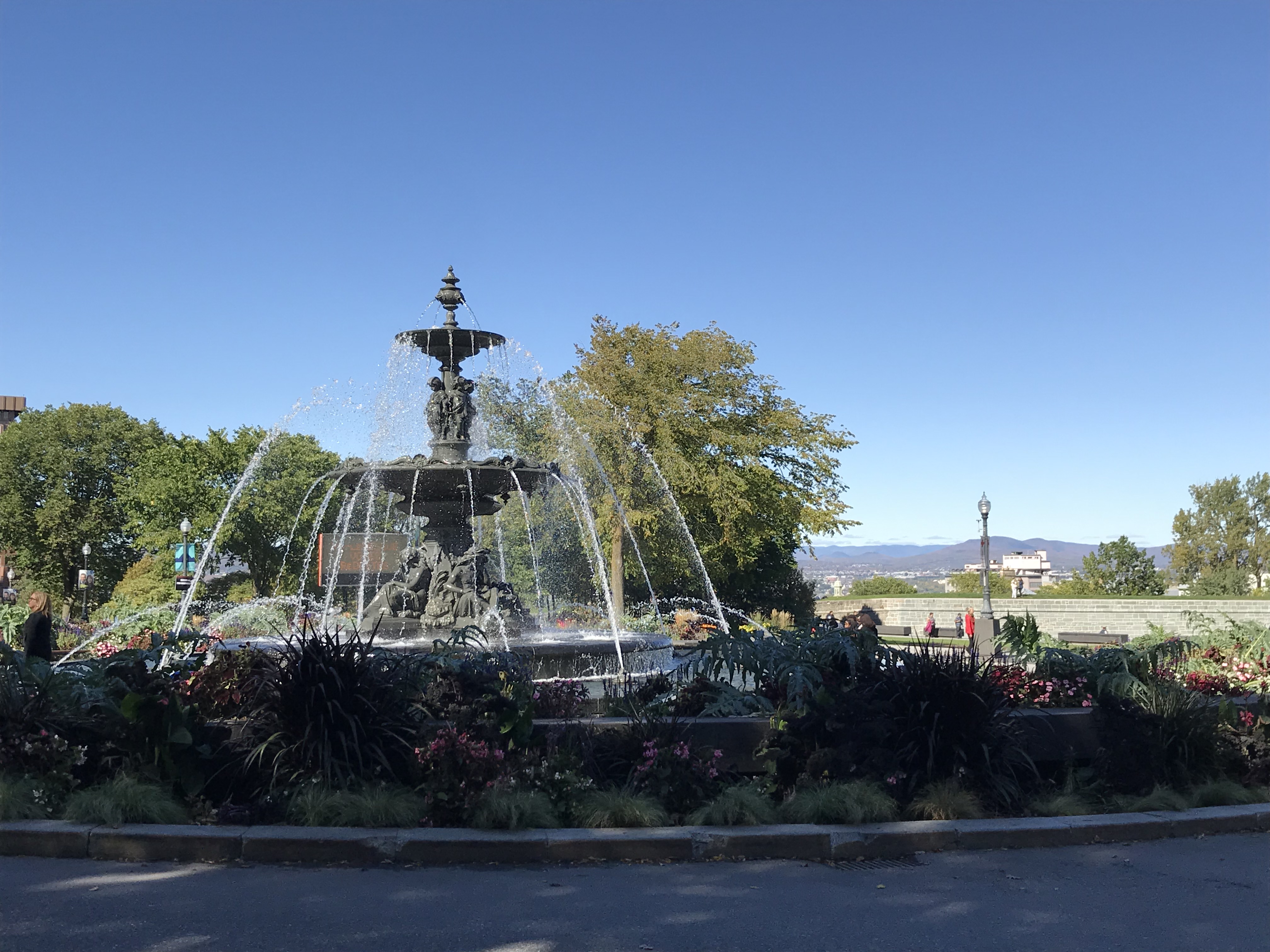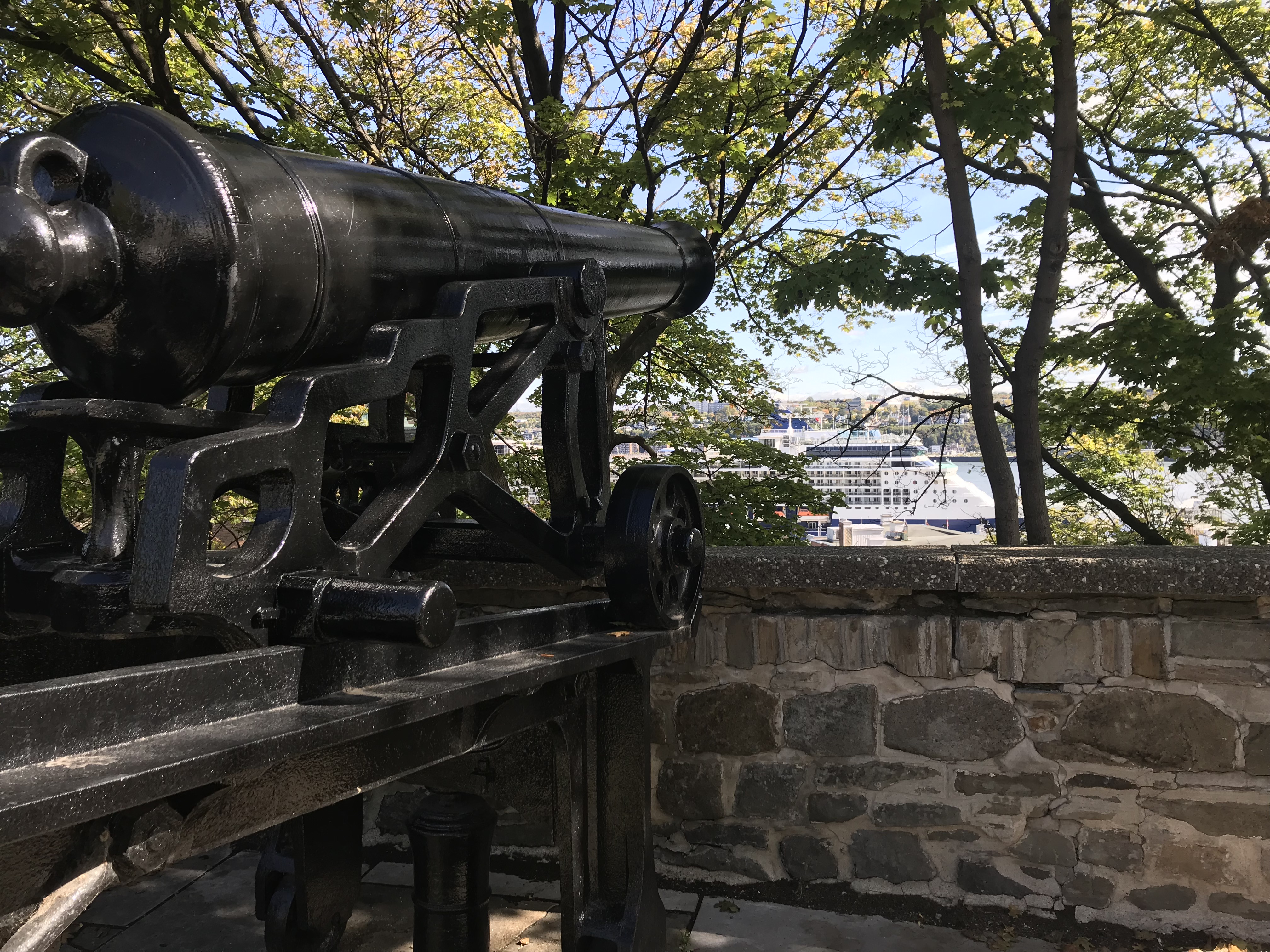 The older section of the city lies close to the riverside, and as you climb the hill you reach the more modern sections of local government, shops, the city walls and fortifications from British and French governance. There are only a few remaining gates into the city walls, with the Citadel anchoring one side along with the expansive Battlefield Park along the cliffs and river above the old city. The center of the skyline is a giant chalet-style hotel at the top of a funicular, which I chose not to take in favor of walking up along the ramparts and cannons along the hill.