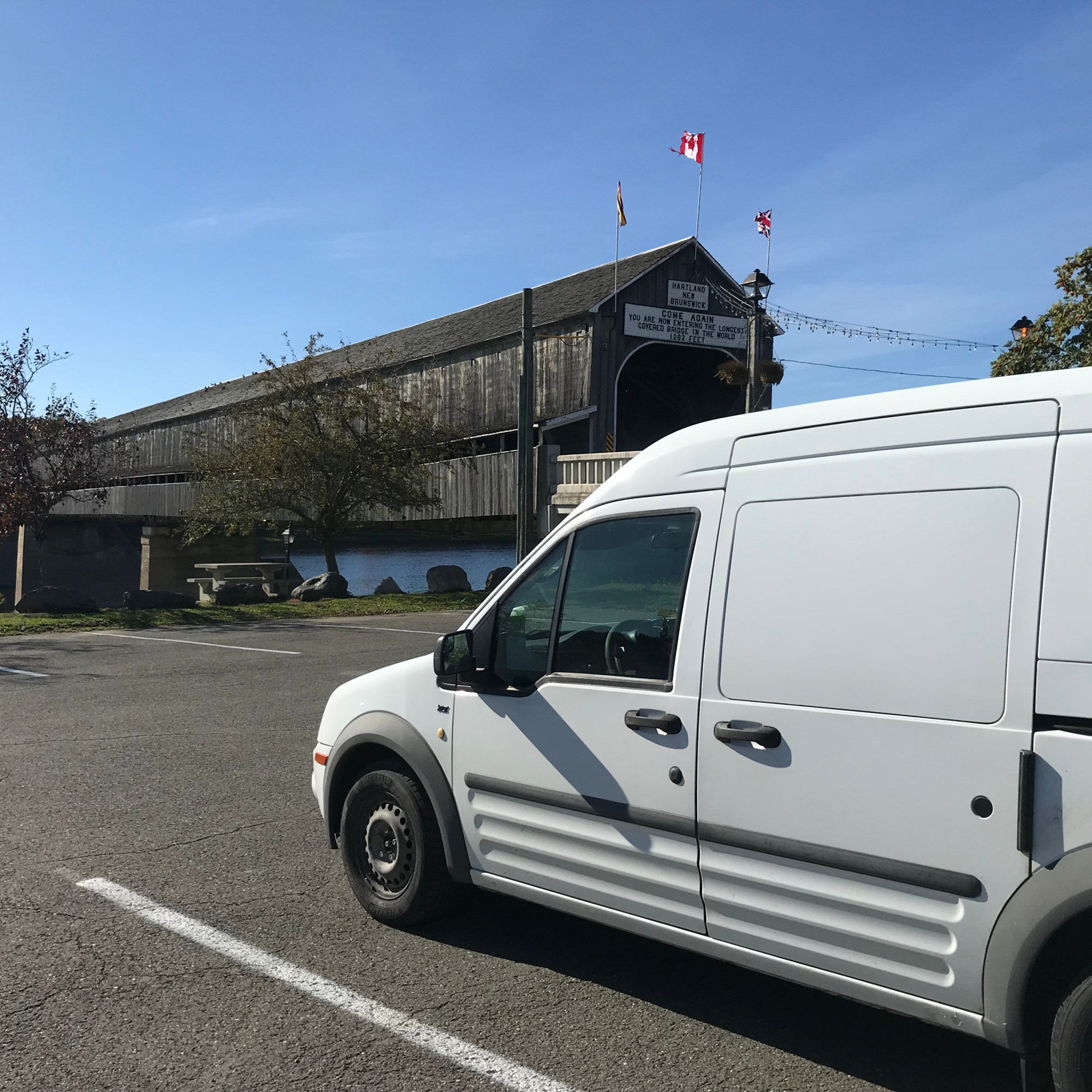That night I got my first below freezing sleeping adventure- not bad going to bed, but a chilly wake up call. I did get up in the night to put on socks and my knit headband, but haven’t had to pull out the sleeping bag for reinforcement yet. It was out of Quebec and into New Brunswick next on my way to meet up with family friends in Nova Scotia, and along the way the highway sign gods were good to me and I stumbled upon the world’s longest covered bridge. The world’s longest!!! I have a special place in my heart for a good covered bridge, with the covered bridge tour near my college town, and a long and finally fruitful search for one we could drive across still on a past road trip. So, I may have been overexcited. There’s a video I took while crossing. It was great. Yet again, fall colors on point all along the way.