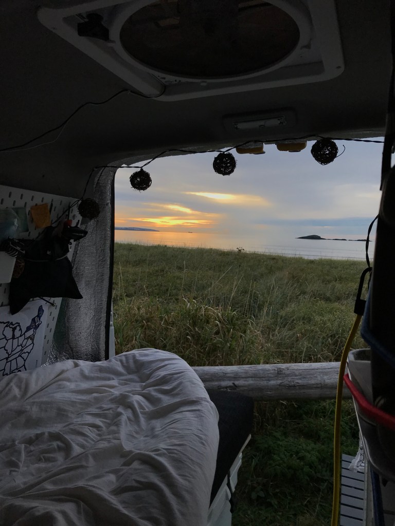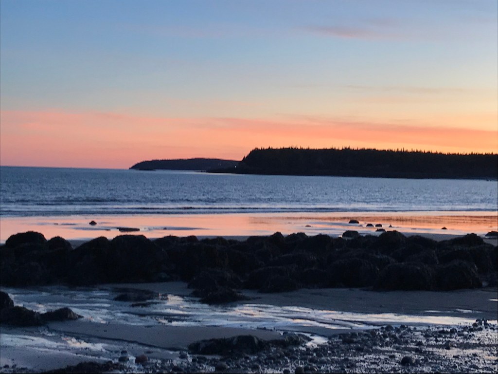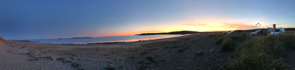 Stayed the night by the beach on the Bay of Fundy just outside St. John’s, and was treated to a beautiful sunset, and woke up early for an equally magical sunrise. I could see evidence of the massive tidal change on the beach, but hit a lower tide for both sunrise and sunset and slept through high tide, though I swear I could hear the change in the night sea sounds. Next, on to Nova Scotia!