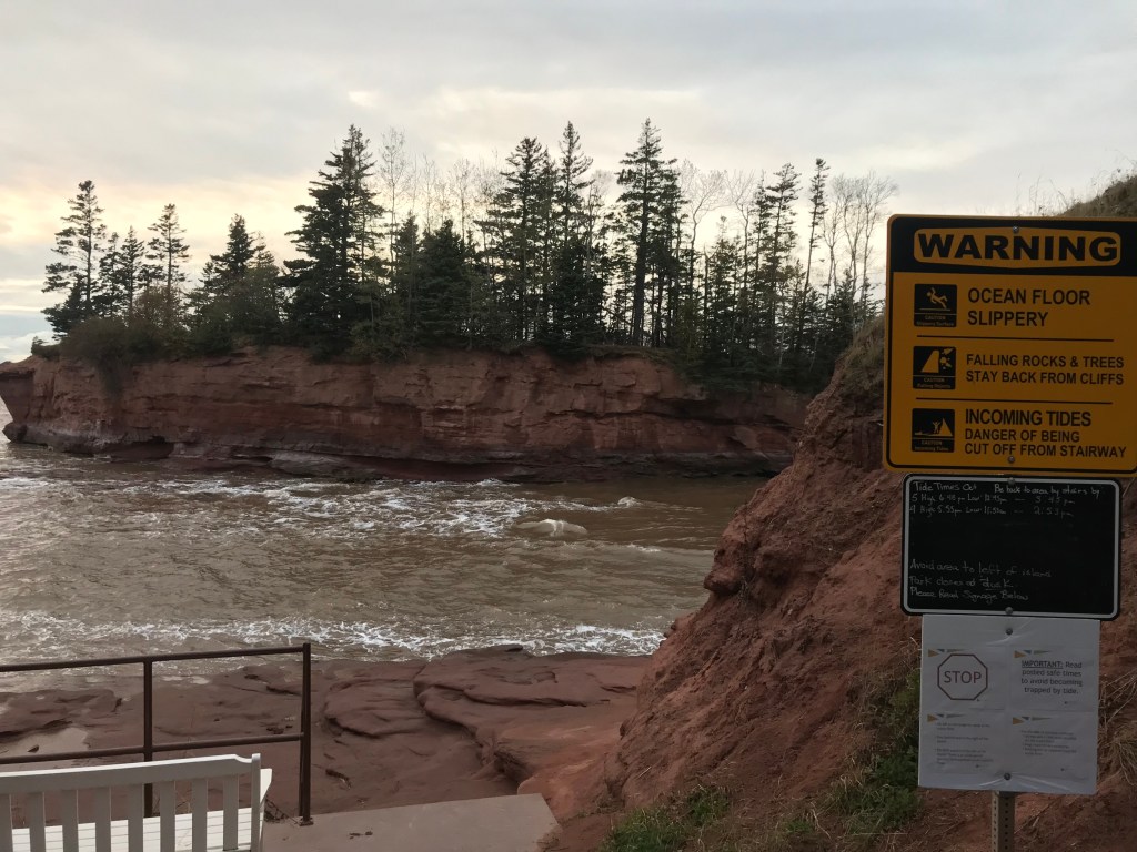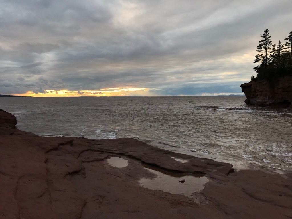 After imposing for too long on these generous souls I made my way southwest. I stopped off at the Burntcoat Head lighthouse on this side of the Bay of Fundy in the Minas Basin, which experiences some of the largest tidal change (the largest on Earth in certain times of year and conditions), and it was illustrated here for sure. At low tide you can walk to the island across the way and signage warns to be back at the stairs by a certain time each day as the tide comes in. Hard to imagine potentially stepping on clams out there. These formations are known as ‘flowerpots’ since at low tide they resemble a clay pot with trees growing. Love it.