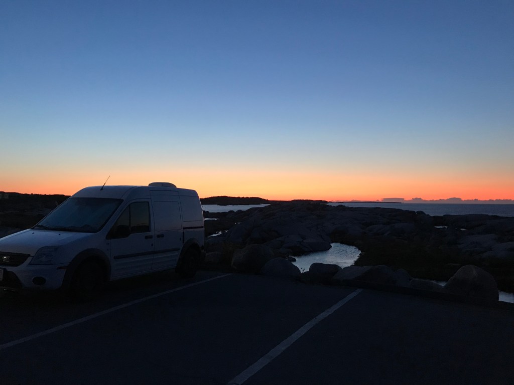 I was going to spend the night nearby at a beach, but the intense winds were too much and were rocking my little van too much for sleep so I journeyed on into the night across to Peggy’s Cove. I didn’t really get a sense of this unique place until morning, but the whole small fishing village is basically built atop granite boulders carved from glaciers and tides. Pretty amazing in daylight, but spectacular at sunrise.