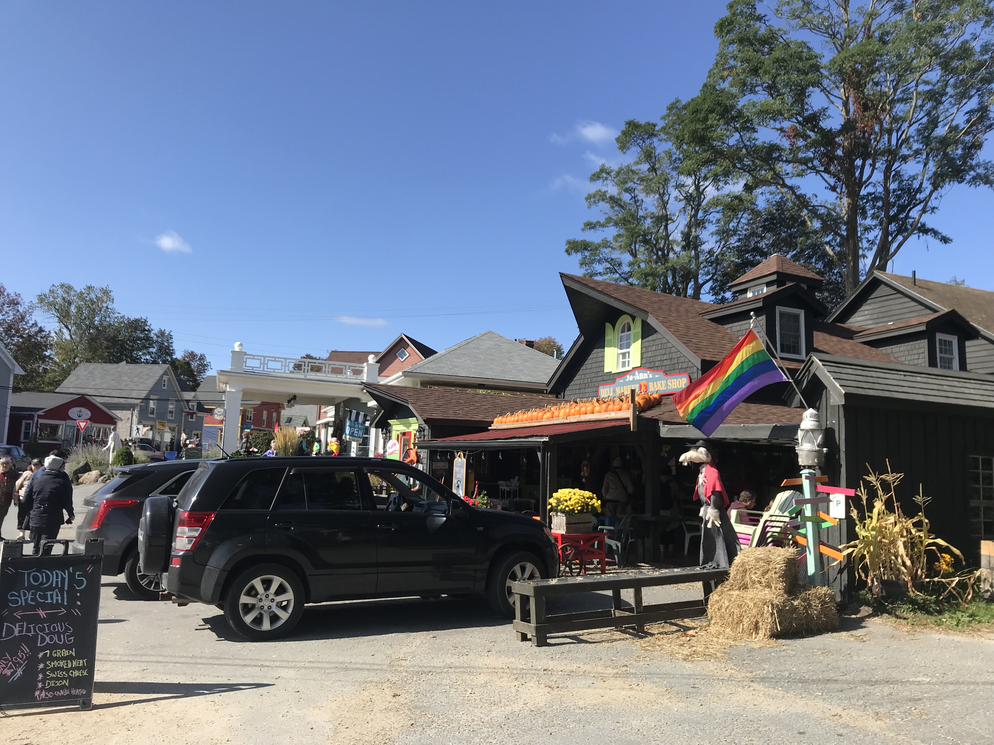 Not far out of town I came across another gem, the town of Mahone Bay, or as I shall refer to it forever in my mind, the Stars Hollow of Nova Scotia. I was just driving through but was stopped in my tracks by the scarecrow festival, and had to park and explore this place. Each shop and most homes along the main streets had displayed scarecrows with hilarious themes. I had some wonderful coffee at this shop next to a creek with ridiculous signage inside, got some provisions at a shop with baked good smells luring me in, and immediately wanted to buy a place here and be part of this community. I’m sure this is the tourist industry at its best and to visit in winter would be a different story, but seriously, if anyone wants to go in on a cottage here call me asap.