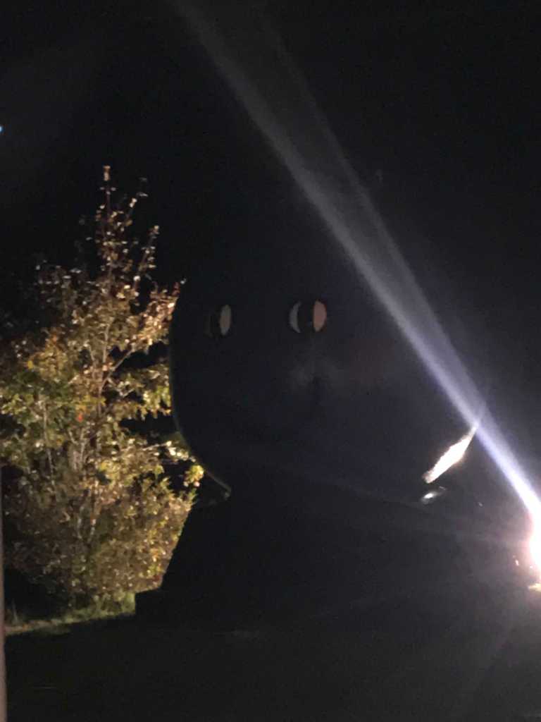 apologies for the terrible lighting, but this giant blueberry guy greeted me at the gas station