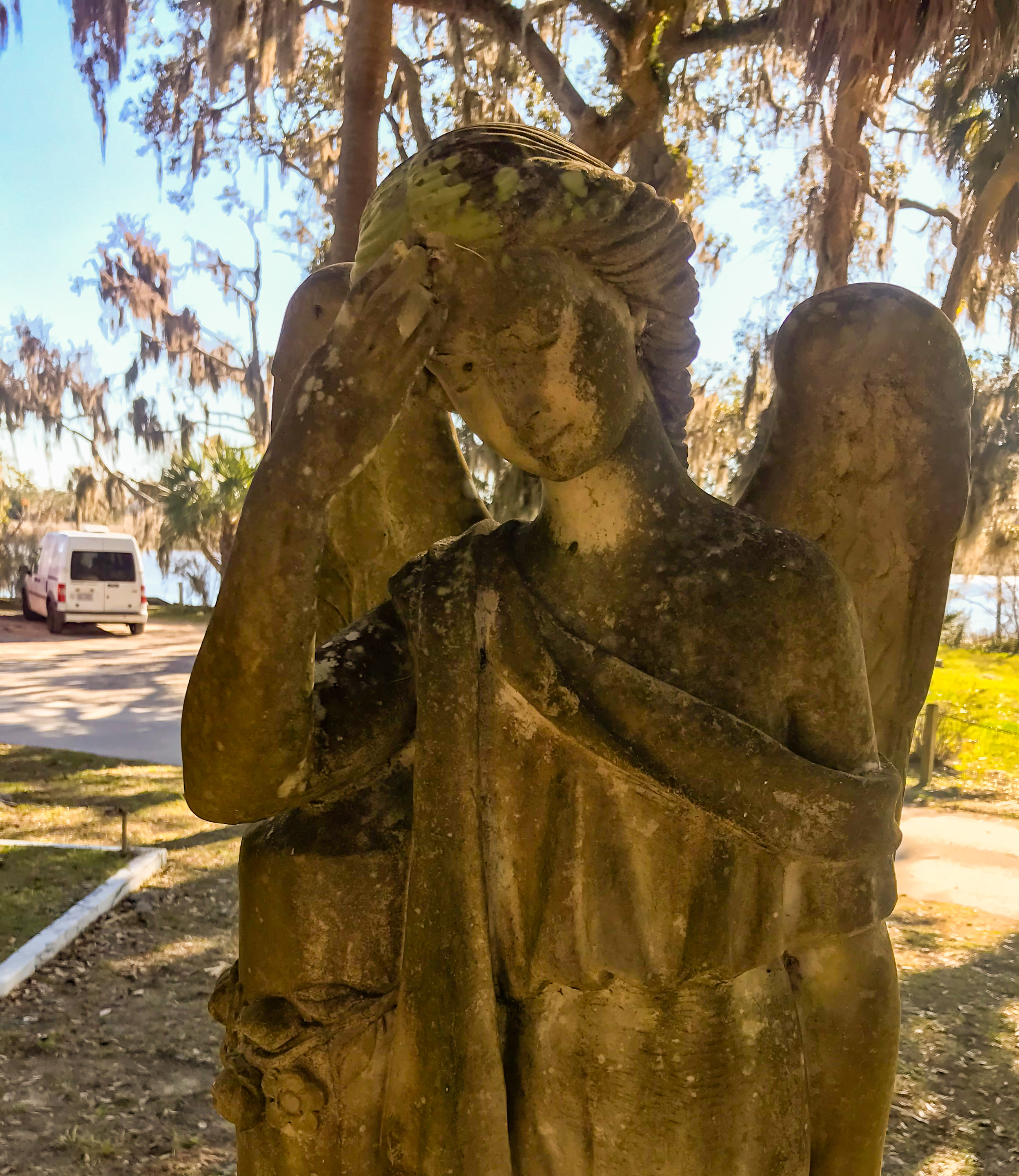 I wandered through both the Colonial Park cemetery in town, and drove out and spent the morning at the gorgeous Bonaventure cemetery outside the city center. This place would be a wonderful spot for one’s remains to call home for eternity. Right on the riverside with views of marsh, and Spanish moss adorning trees left and right, it’s just a pretty spot enhanced by the elaborate statues and grave markers. I chatted with a fisherman who used to live in Maryland and we agreed this was a little more peaceful than inside the beltway.