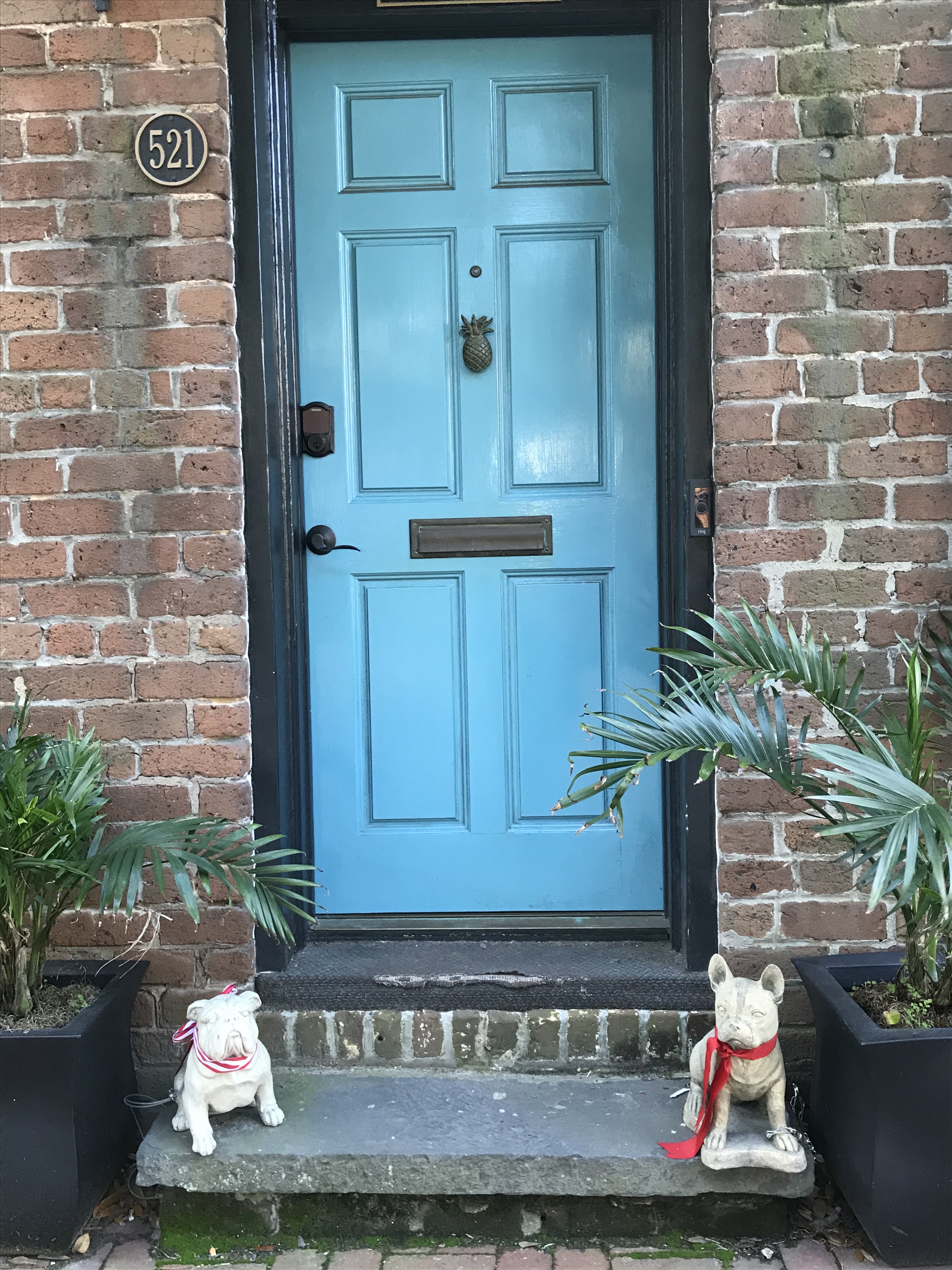 I’m not going to lie… driving into Savannah was underwhelming. Savannah doesn’t have a skyline to speak of and the direction from which I arrived provided mainly views of factories or something similar (also stinky). The beauty of the city lies behind the wall of modern hotels and tourist shops lining the waterfront area. And beautiful it is with all its historic squares and beautiful homes and gardens. Live oaks covered with Spanish moss trailing down make even uneventful streets seem alluring, mysterious and romantic. I love, too, how they’re not afraid of color in the south (or the parts I’ve seen so far)- pretty pinks, yellows abound with major pops of color on doors, shutters, and trims.