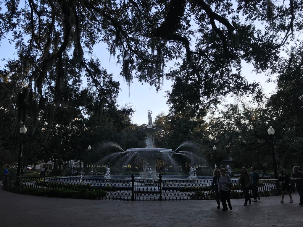 My favorite place in the city, though, was Forsyth Park. It was a gorgeous sunny January day with temperatures in the low 60s as I walked through the park, plopped down on a bench to read for a bit. Around me people were playing soccer and frisbee games in the grassy fields, kids and dogs were running happily among the trees, tourists (such as myself) jockeyed for photo space with the dozen or more wedding parties posing in the last hours of daylight. The golden glow on the moss and peeking through the oaks and palmettos was a pretty magical view to end a day of walking. Pretty decent and delicious start to my southern adventures.