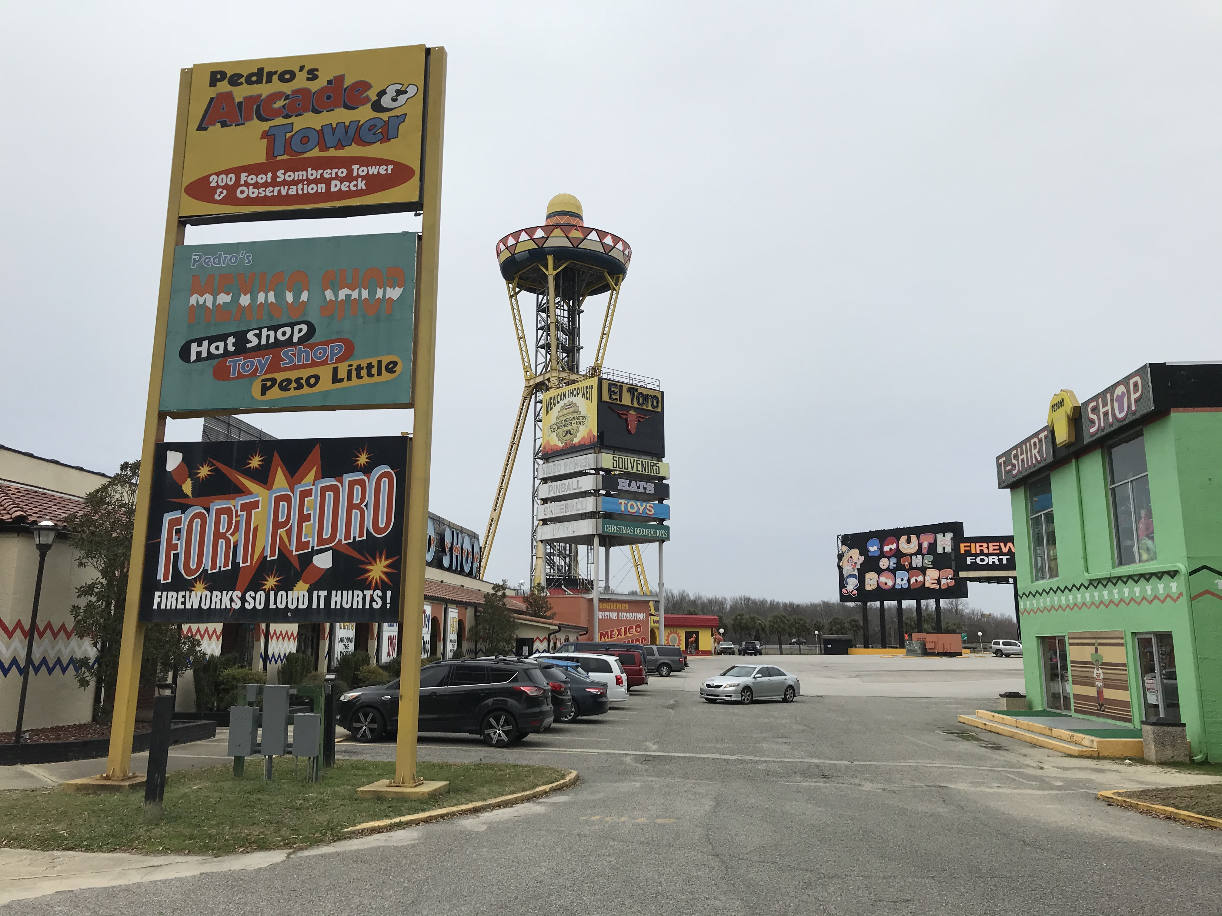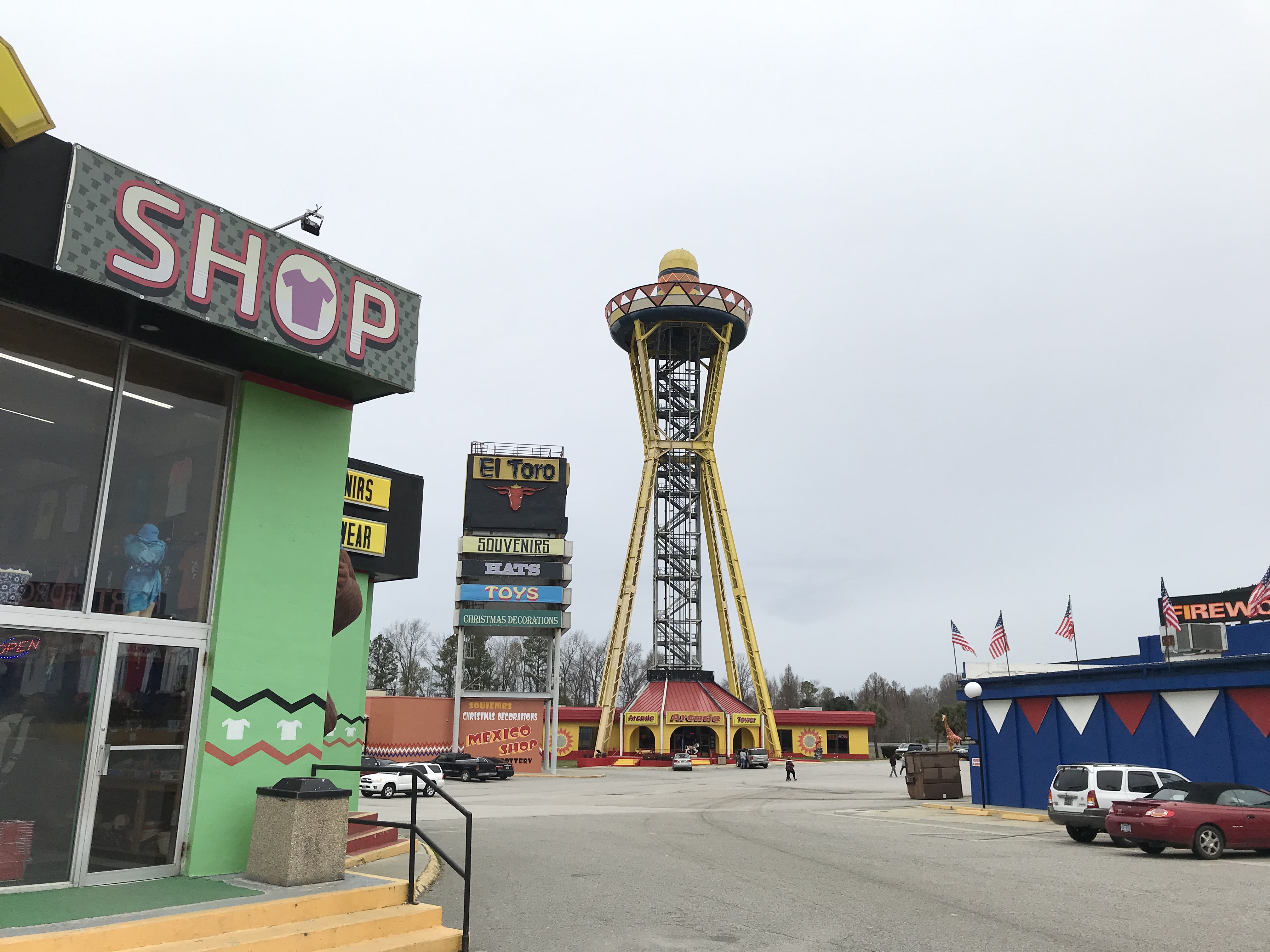 Not long after hitting the road from their place, I saw my first billboard for the rest stop mecca and home of all things tacky: South of the Border. This place is legendary in large part due the barrage of ads you see for it for probably a hundred miles in any direction. I’ve been before, and of course stopped again. It’s just over the border from NC to SC and spans two exits with its multiple buildings and attractions ranging from a reptile world, amusement park, restaurants, gift shops, and maybe even a hotel. It was hard to distinguish what was actually functional since I was there in the off season but it all looks run down and dirty. A memorable rest stop though for sure. Those were a 15 minutes well spent.