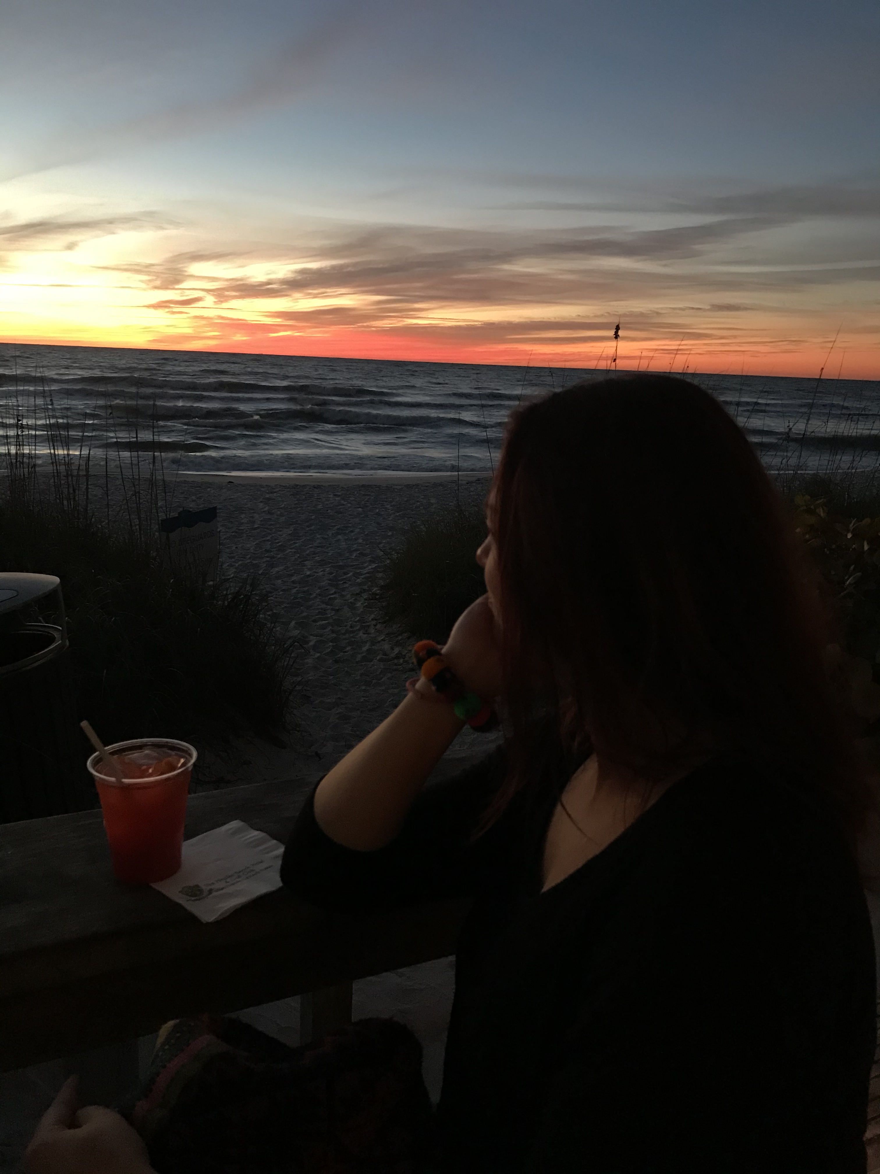 Instead of actually go see what the deal with this game is (my best understanding is that it’s senior college atheletes in a sort of allstar game with scouts, which is also mainly a fundraiser for Shriners Hospital), I elected to chill at the hotel by the beach in a little cabana chair setup. I chatted for a bit with a girl next to me who was also a frequent solo traveler, but then she tried to hype up a Christian book she was re-reading so I figured maybe we had run the course of our commonalities with the travel. Either way, she went off to the bar soon and I had a nice relaxing reading and sunning time. The clouds were beautiful, the sunset was pretty decent, and I even braved the cold water for a few minutes.