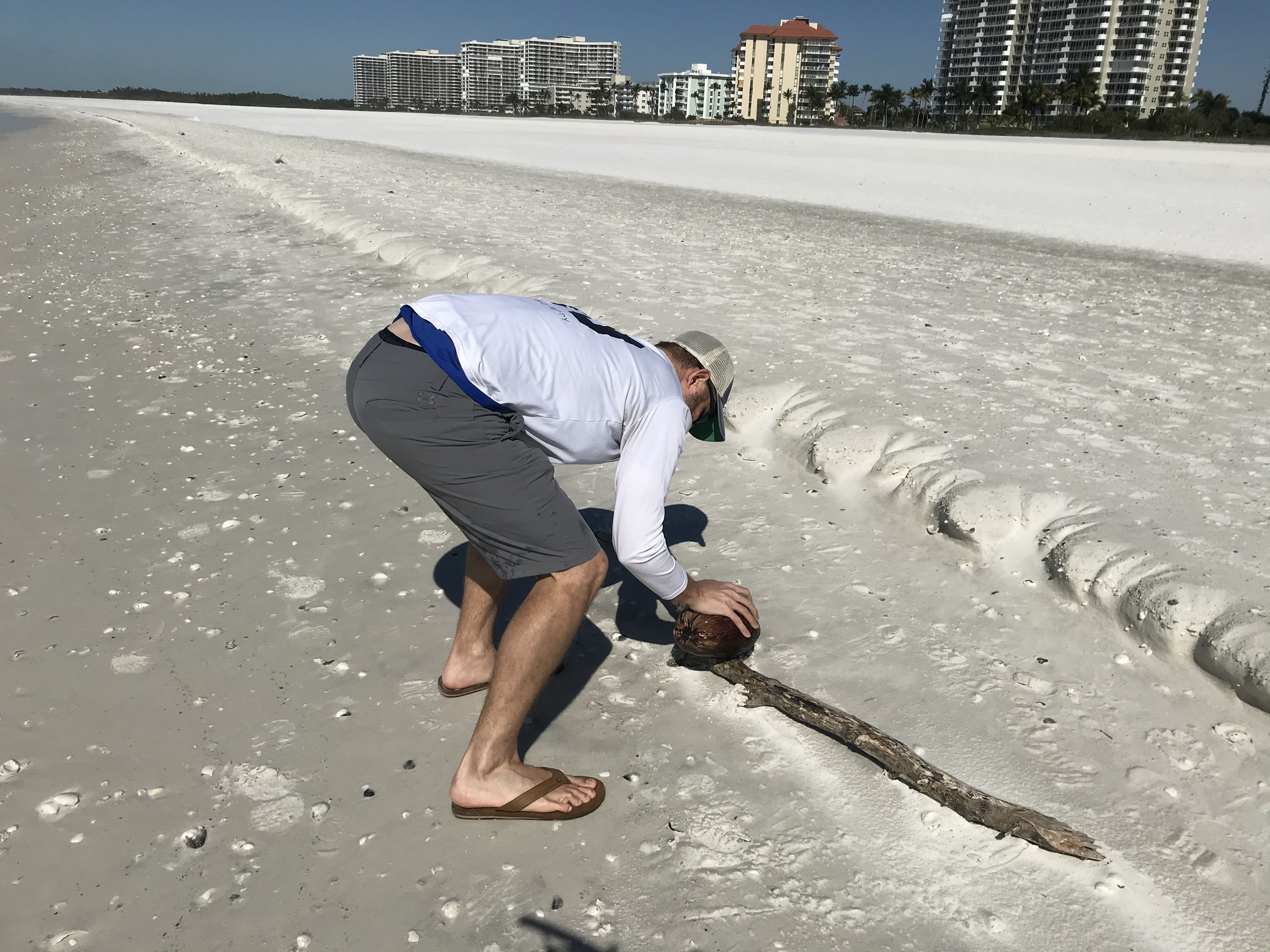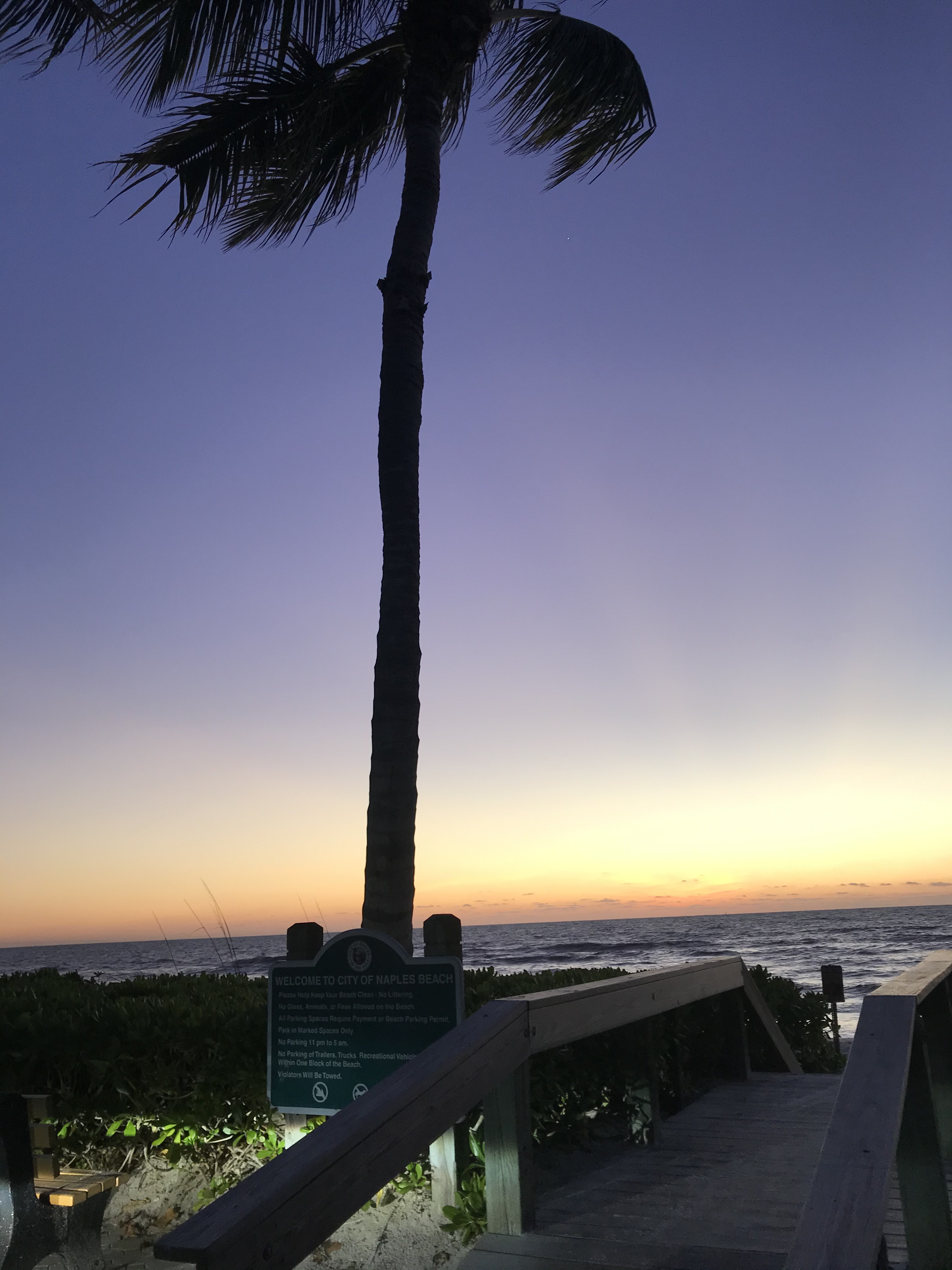 Some longtime family friends/my mother’s longtime boss before she retired offered to let us use theri condo in Naples, so we jumped on that as we continued south. Naples is an affluent area which reminds me of my hometown just picked up and moved to the beach. It was kind of eerie how like Bethesda or Chevy Chase it was in the shopping area. We hung out at the beach and watched the pretty sunset, and had a sunset drink at a fancy hotel down the road. It was very restful, until the next morning when the landscape people were working with one of the neighbors to do some trimming around 7am. On our way leaving Naples to head off towards the southeast, we stopped in Marco Island for a bit and walked the beach in a strong wind. We saw all kinds of shells and even a coconut washed up which did not appreciate Kevin attempting to open it. Sorry, coconut. You win.