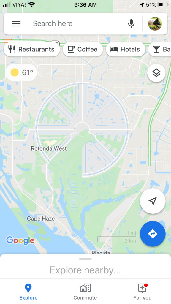 My first stop on the gulf coast was to once again impose upon my mother’s cousin I’d stayed with in Massachusetts. Steve and Margaret were just beginning a three month winter relocation in the quiet town of Rotunda West. This place was a planned community designed to look frankly like a crop circle with canals and golf courses throughout. I mean, if you look at a map it stands out for sure, but it served as a great home base away from the more touristy and crowded areas.