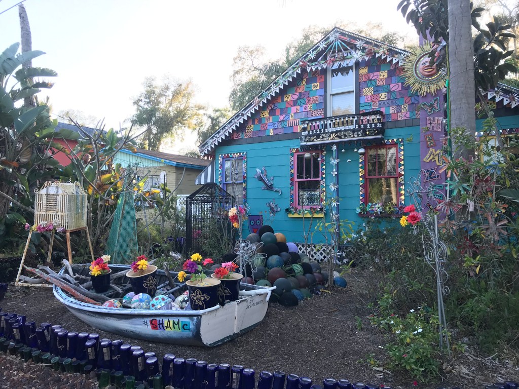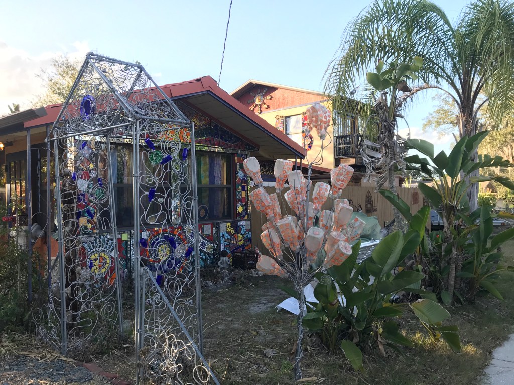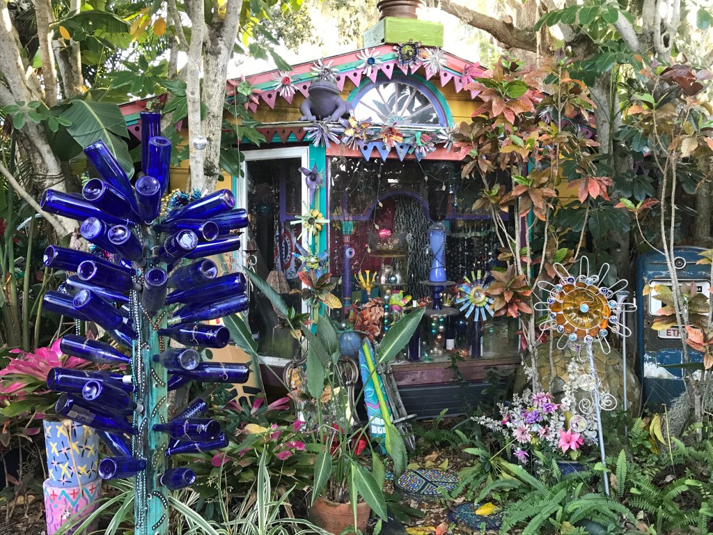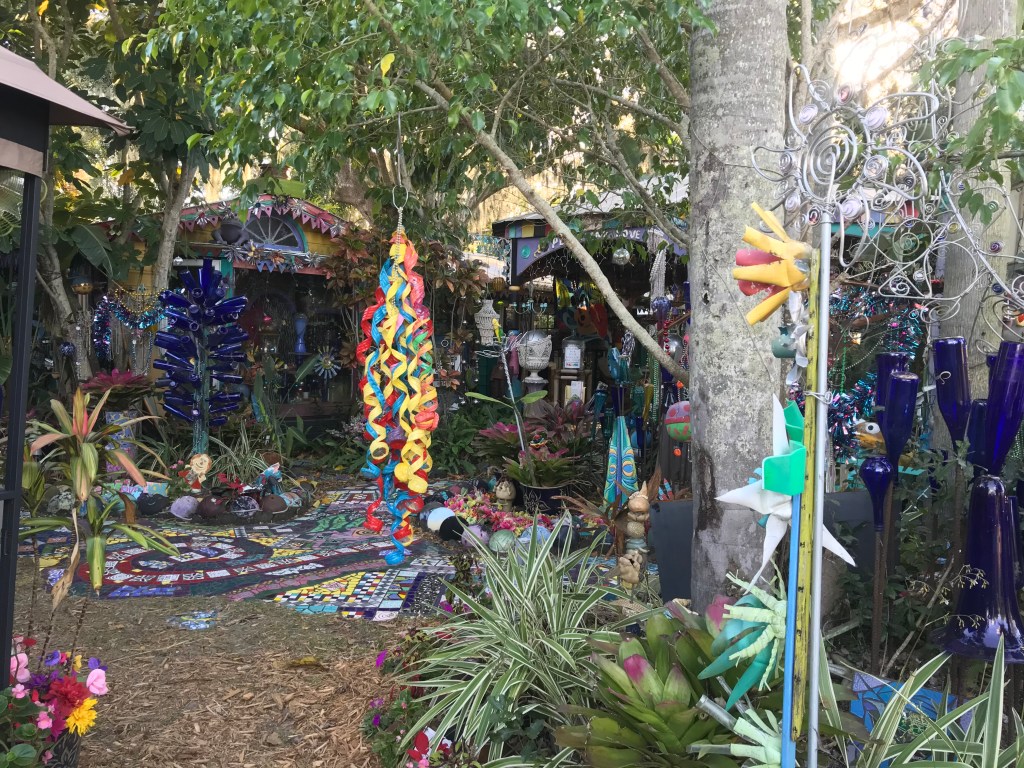 Not far from the school hosting the workshop I discovered a magical roadside attraction called WhimzeyLand. These two properties across the street from one another in a random suburban neighborhood are covered in mosaic art and adorned with bowling balls, bottle sculpture, and all sorts of colorful craziness. Wow.