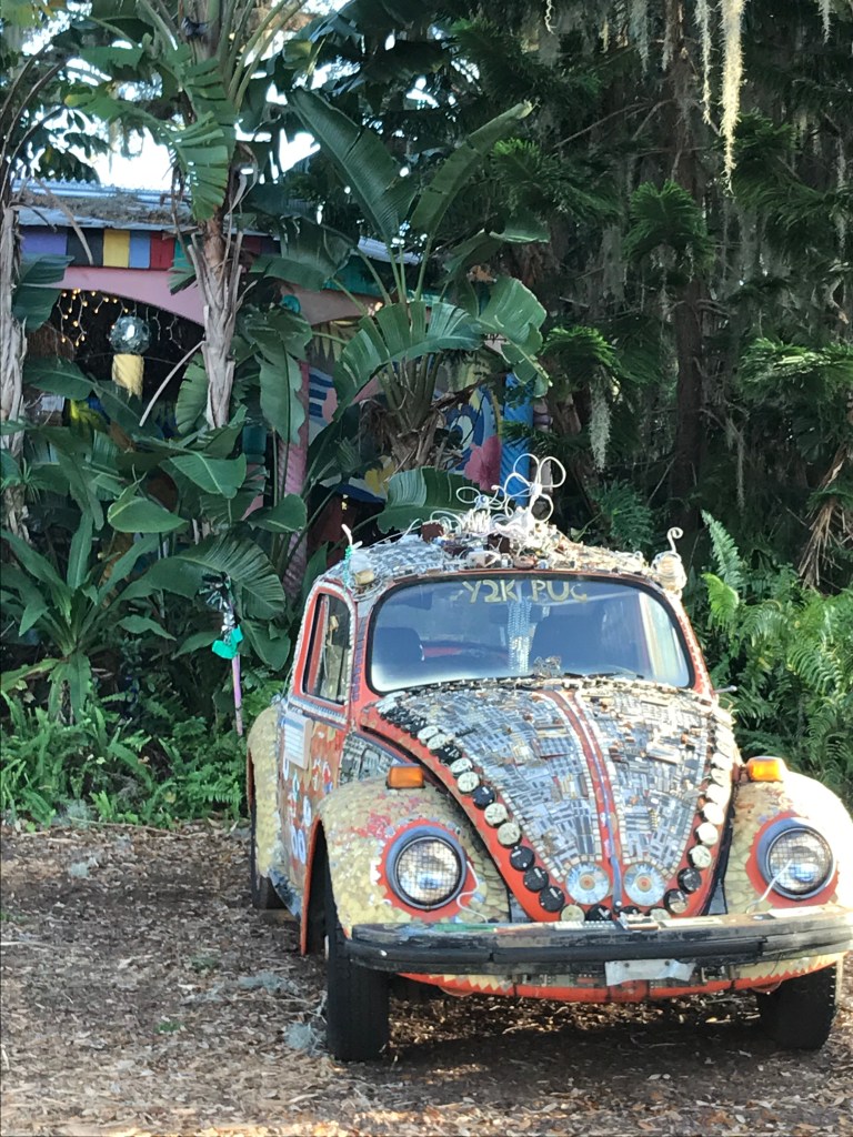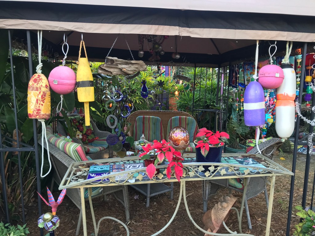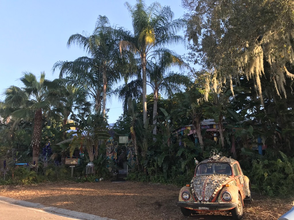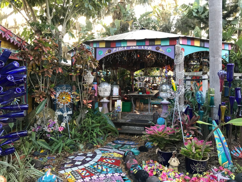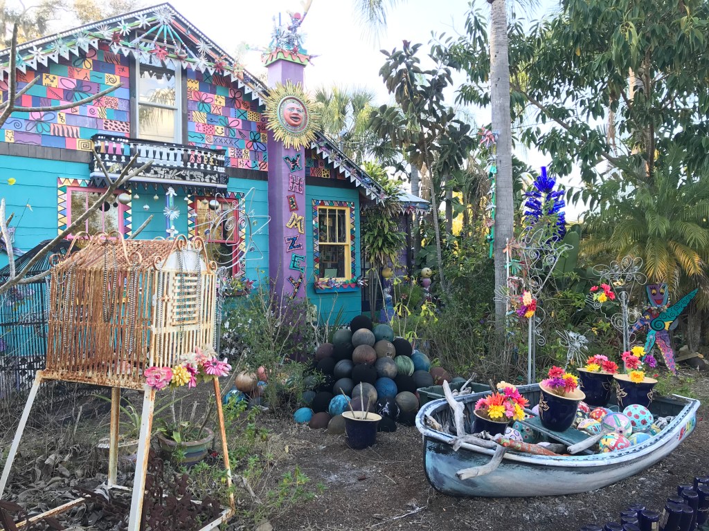 Not far from the school hosting the workshop I discovered a magical roadside attraction called WhimzeyLand. These two properties across the street from one another in a random suburban neighborhood are covered in mosaic art and adorned with bowling balls, bottle sculpture, and all sorts of colorful craziness. Wow.