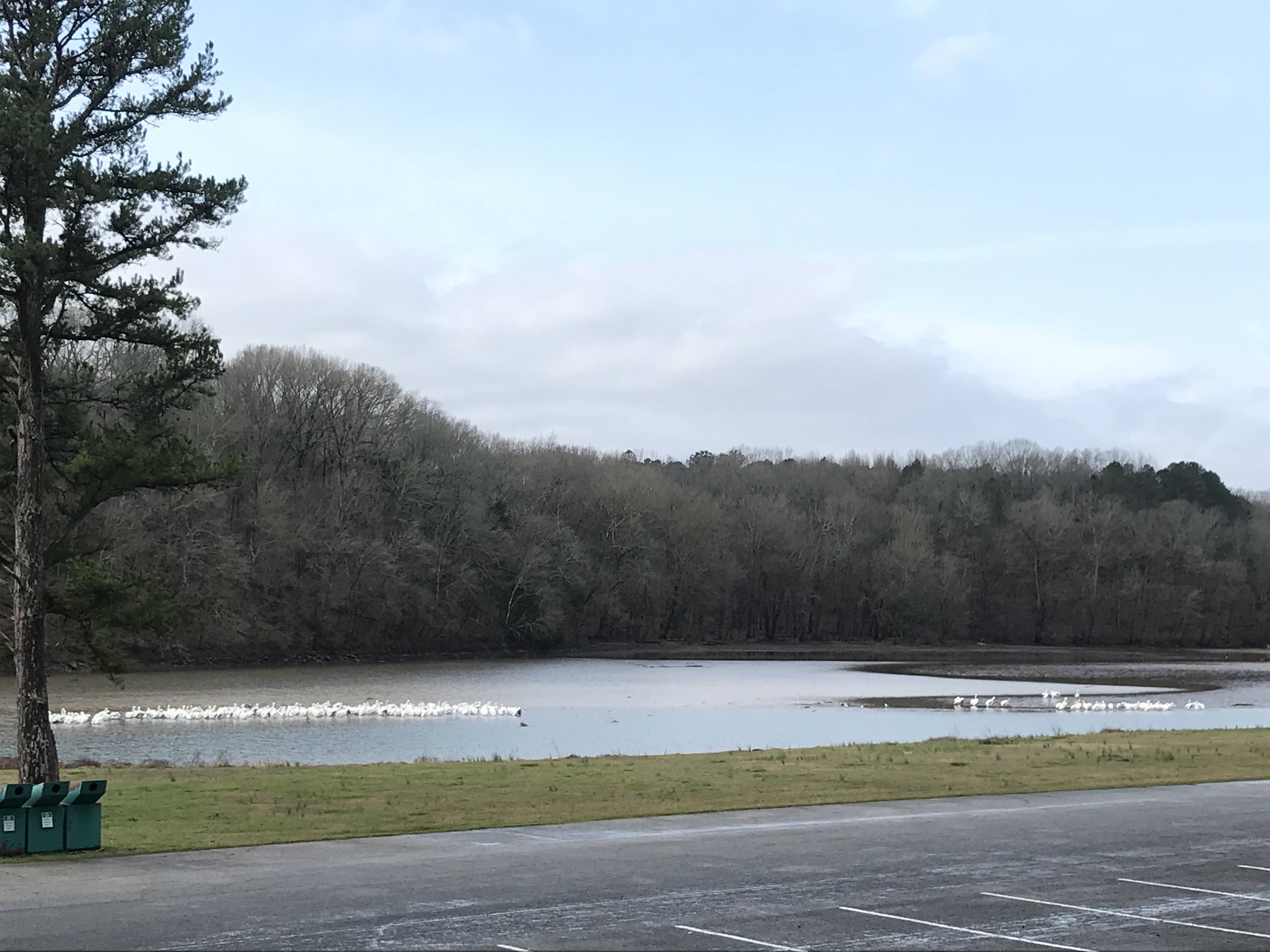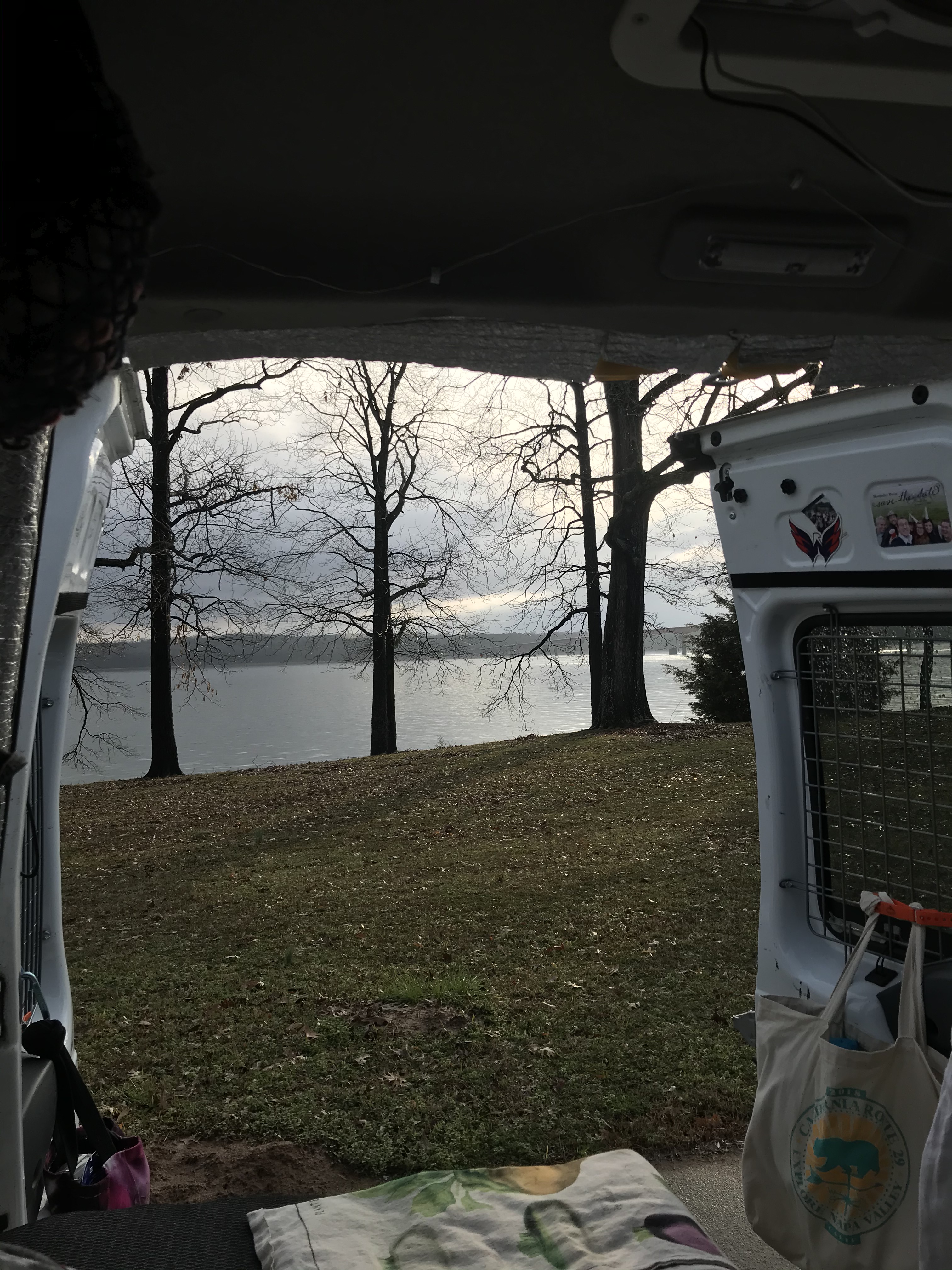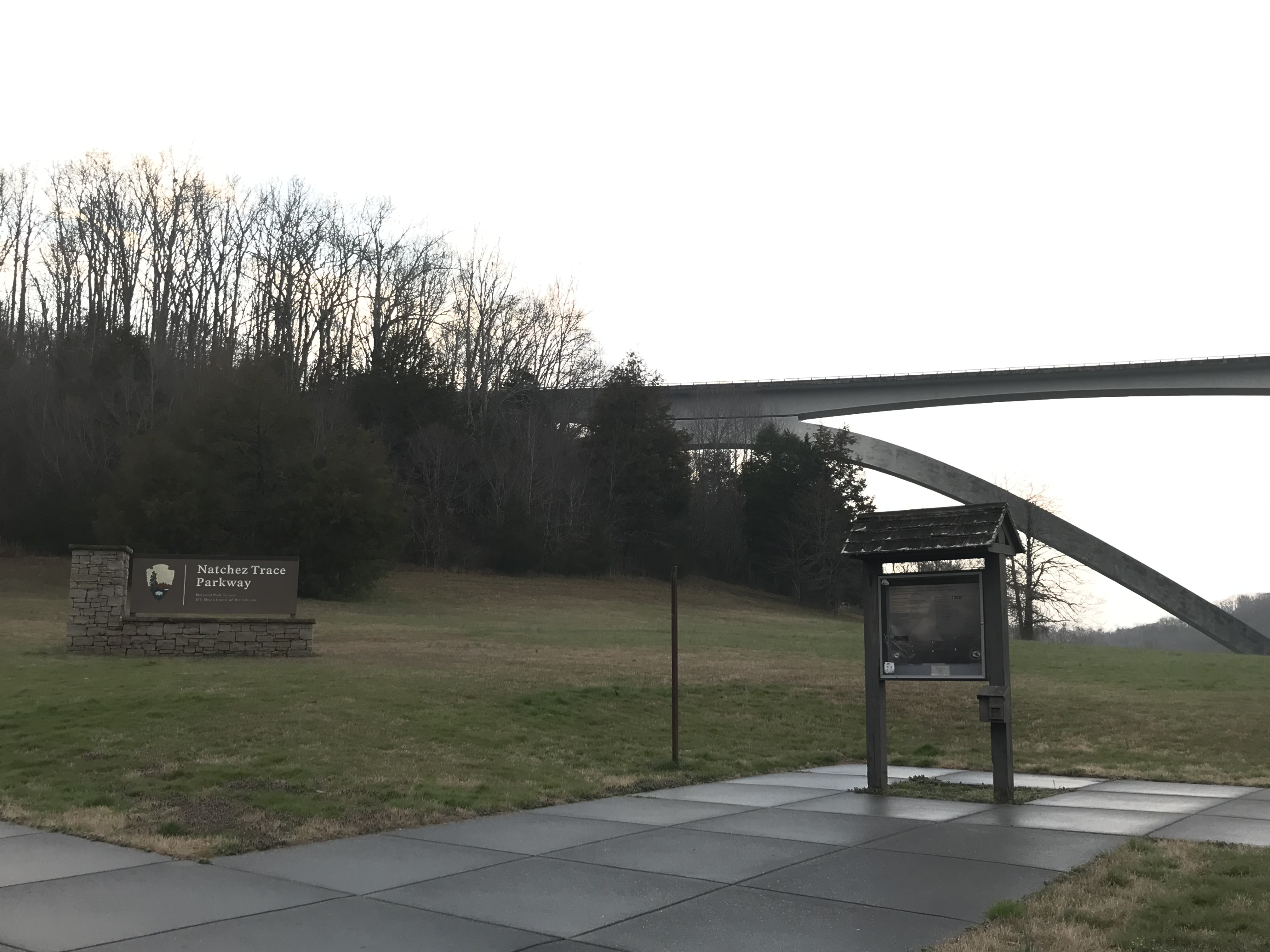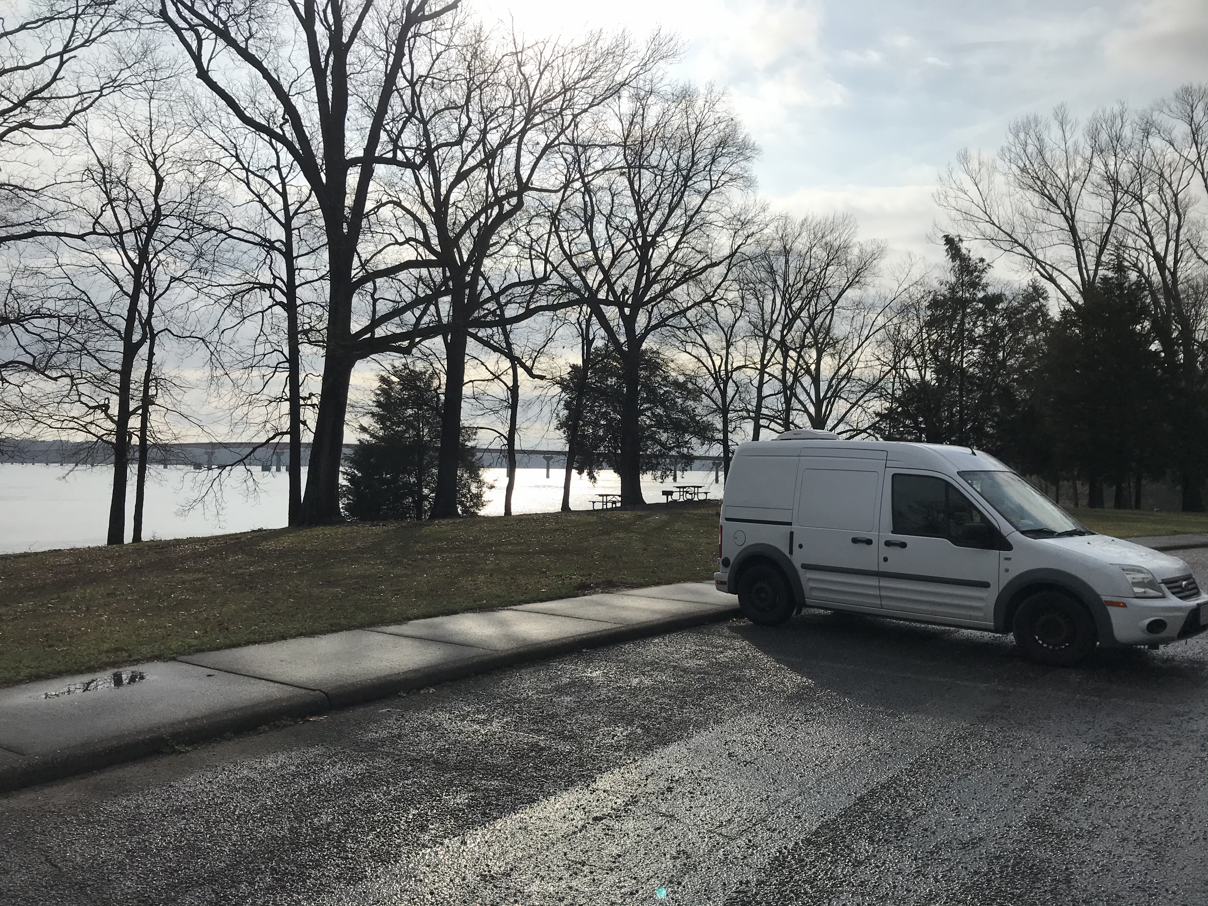 Leaving Franklin, TN, just a few miles outside town I hopped on the start of the Natchez Trace Parkway- a beautiful, mainly one lane road running along a long established Native American trail through woods, swamps, farmland, and fields. I followed the parkway south until it left Tennessee and I’d arrived in Florence, Alabama. There didn’t seem to be a lot going on in terms of music that night so I just went straight to this riverside park just off the Parkway. When I arrived it was extremely dark, foggy, and quiet, and a rainstorm was predicted so I was glad to be in a paved lot not under tree cover. I looked up the flooding table and was all good to go even if it rained a lot where I was and the lot was pretty far uphill from the riverbank, so I settled in to sleep.