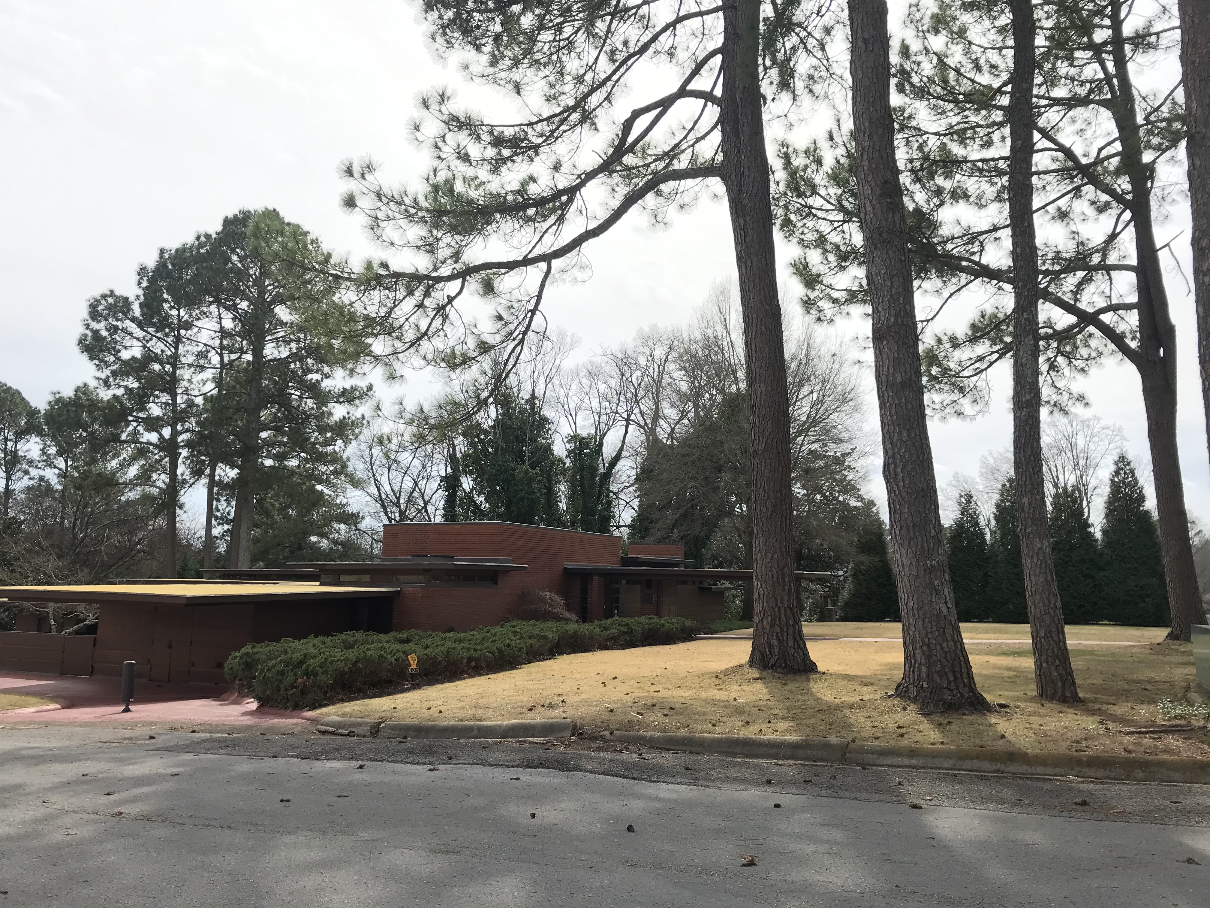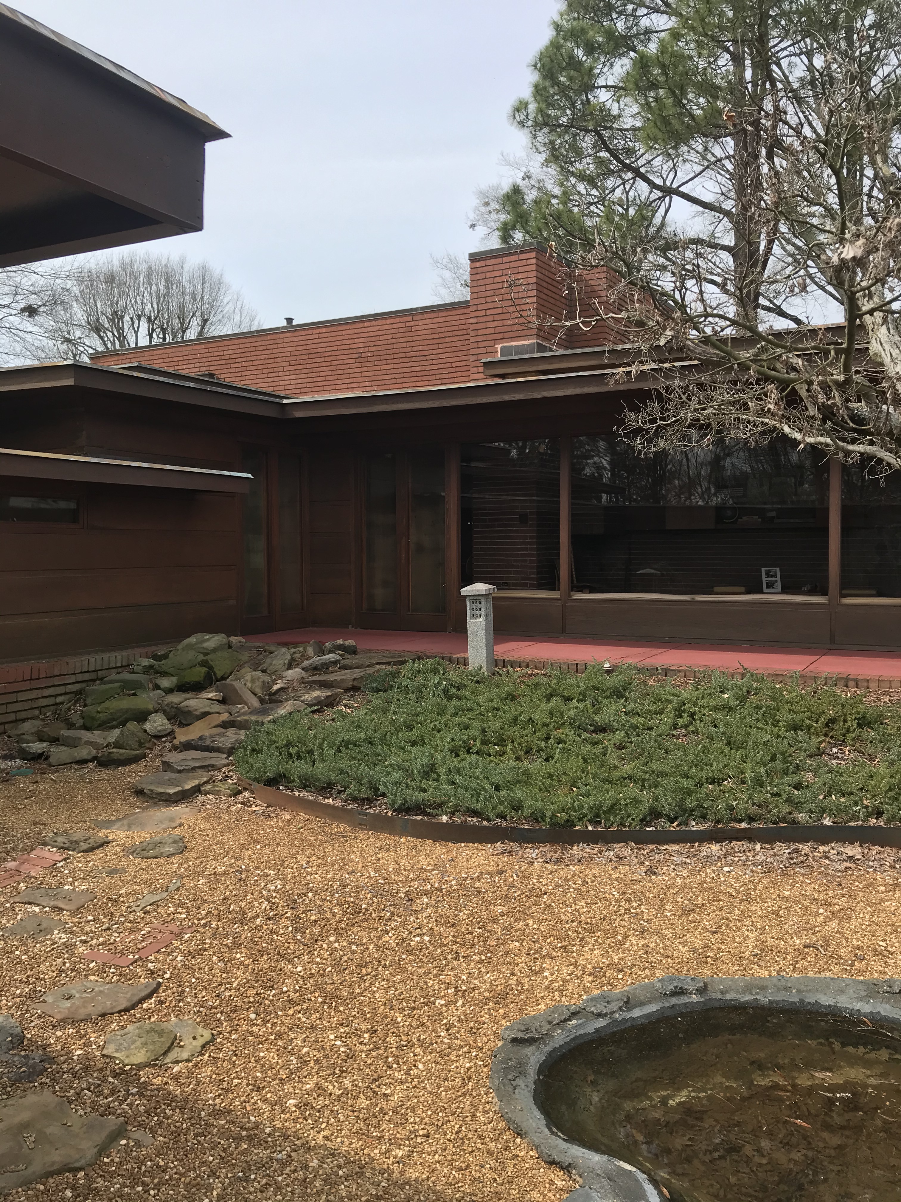 Oddly enough, the remainder of my day in the area was not spent finding music or anything of the like, but instead touring a Frank Lloyd Wright house. Called the Rosenbaum House after the owners, this is one example of Wright’s ‘Usonian’ homes designed for ‘middle-income’ Americans. The idea was to have these homes look like they’re naturally emerging from the landscape, remain close to the ground and open to nature, and designed in a sort of build it yourself kit that can be assembled, added onto, etc. with little additional input from the architect (or so I understand from the tour guide lady). Much of the furnishing is built in, probably because Wright didn’t trust people not to mess up his vibe. It was a beautiful home dominated by local cedar, fancified plywood, local red brick, and big glass windows, with intricate, repeating patterns making the space special. Leaky and not heating functional, but beautiful.