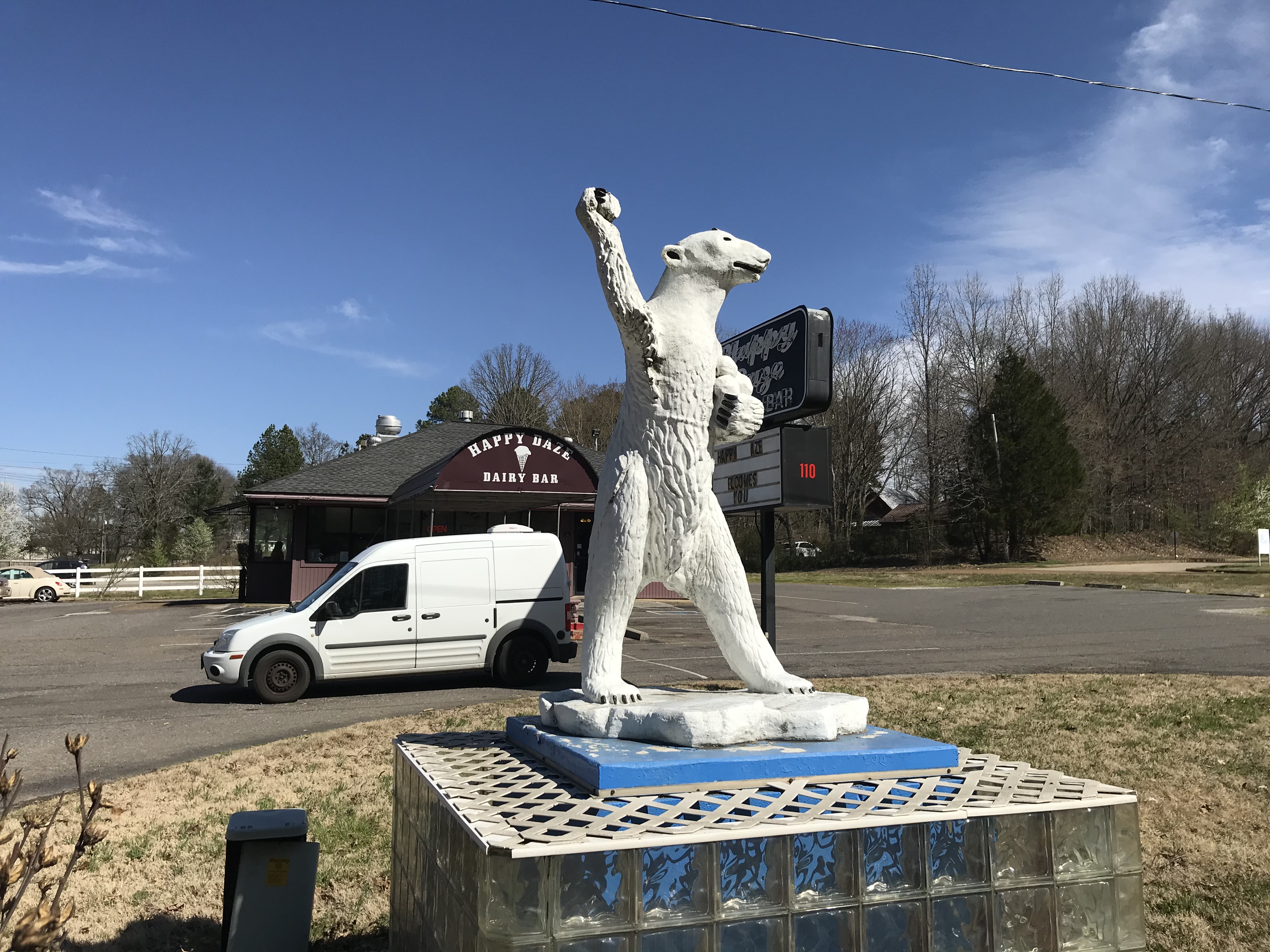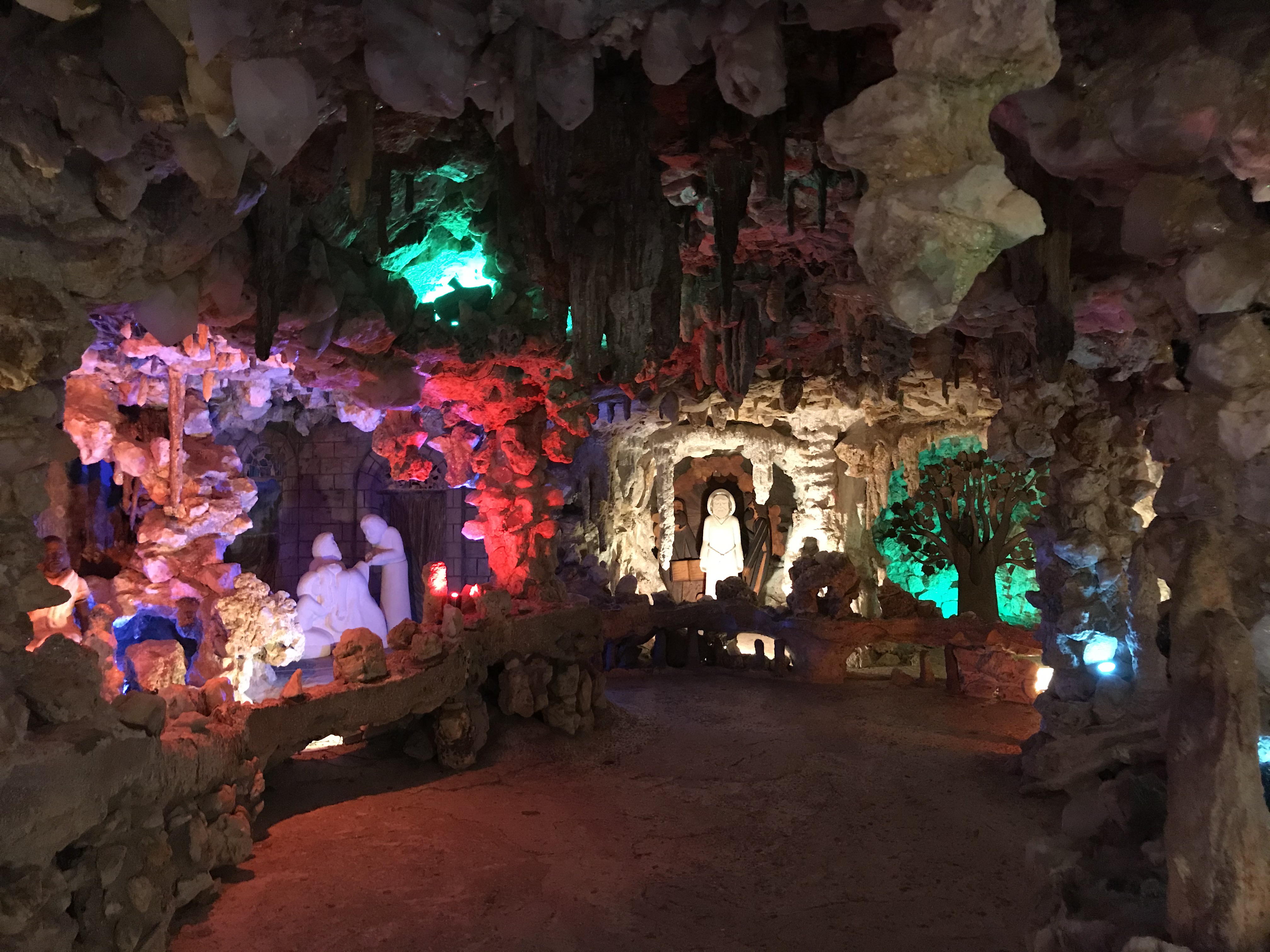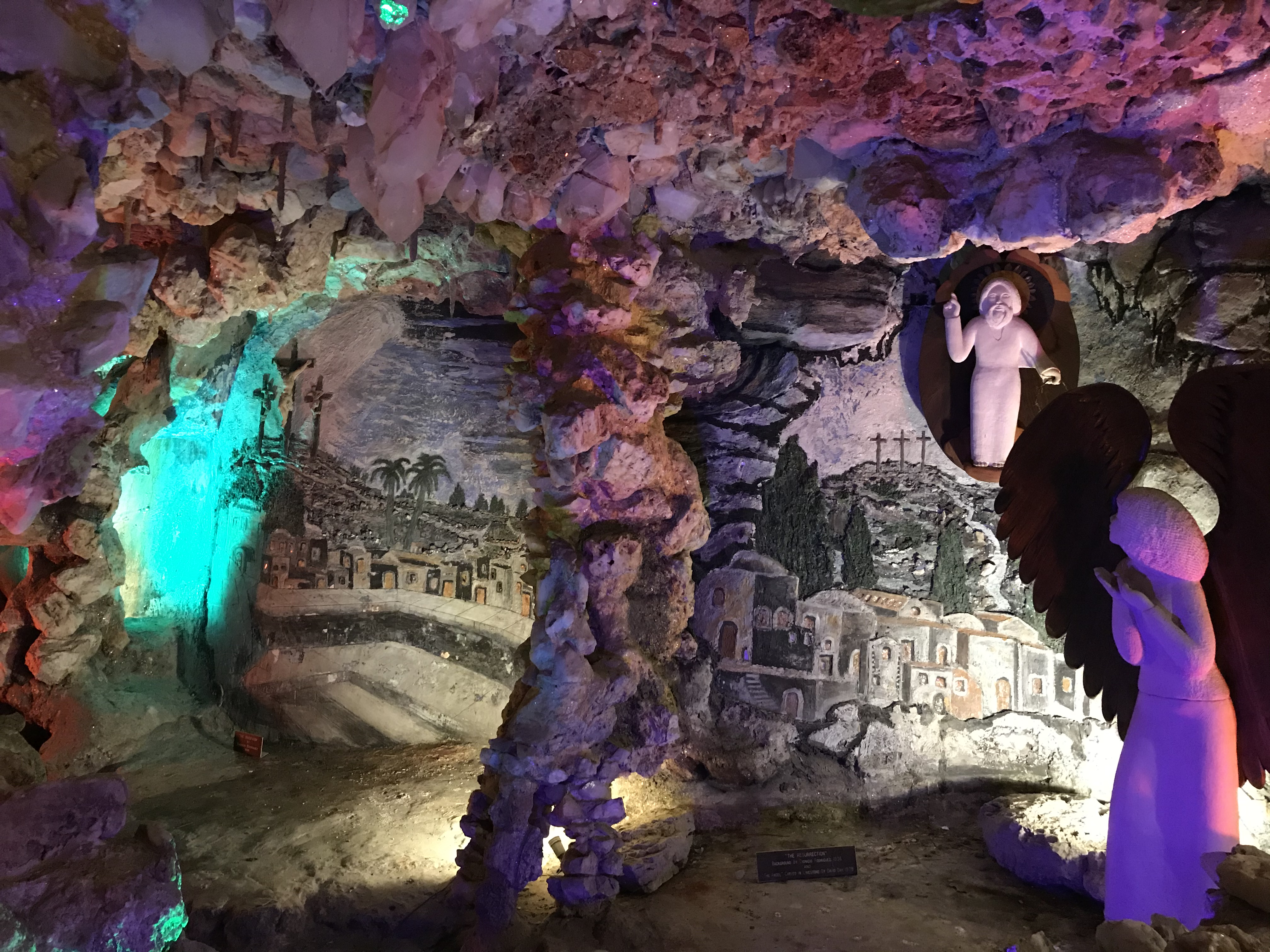 On my route out of town that morning I stopped at a few roadside attractions on the outskirts of the city- one was an old (but still operational) dairy stand with polar bear statues having a snow ball fight for some reason, and the other was a site in a cemetery where this artist created a grotto of religious scenes made from crystals inside a fake mountain tree thing… bizarre but pretty? Who knew cemeteries would be such a wealth of interesting art.