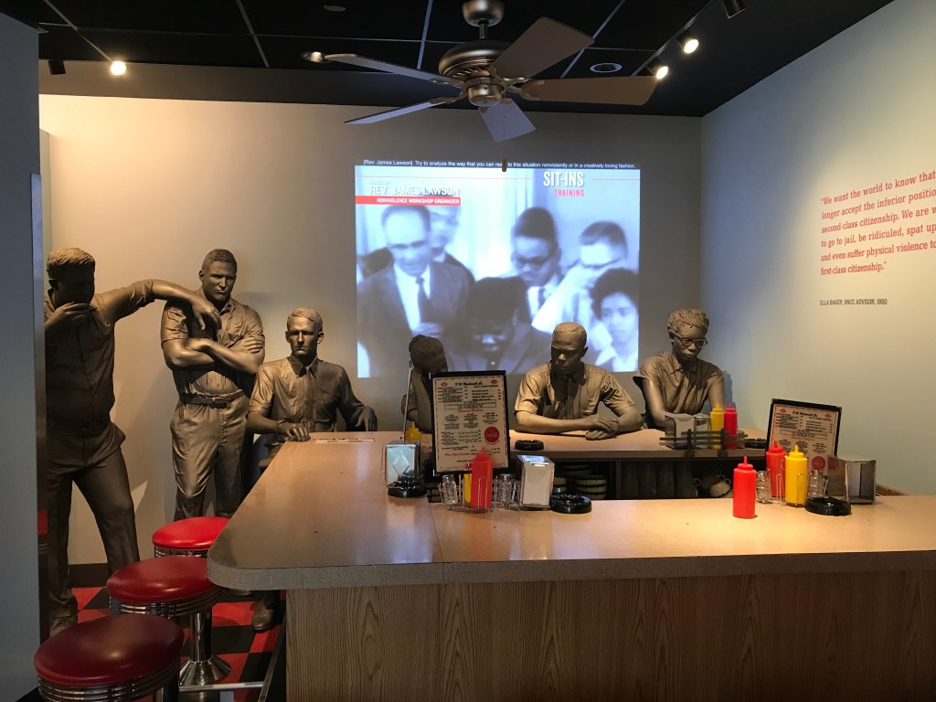Down the street I spent the rest of the afternoon at the Civil Rights Museum in the Lorraine Motel, site of the MLK assassination. The museum was exquisitely put together and I could have spent the full day there. There was a mix of multimedia, reading, photos, sculpture, and information ranging from the transport of enslaved people to the Americas to the more Black Power movement and Civil Rights Act, with a little more modern info thrown in at the end but that didn’t seem to be the era of focus.