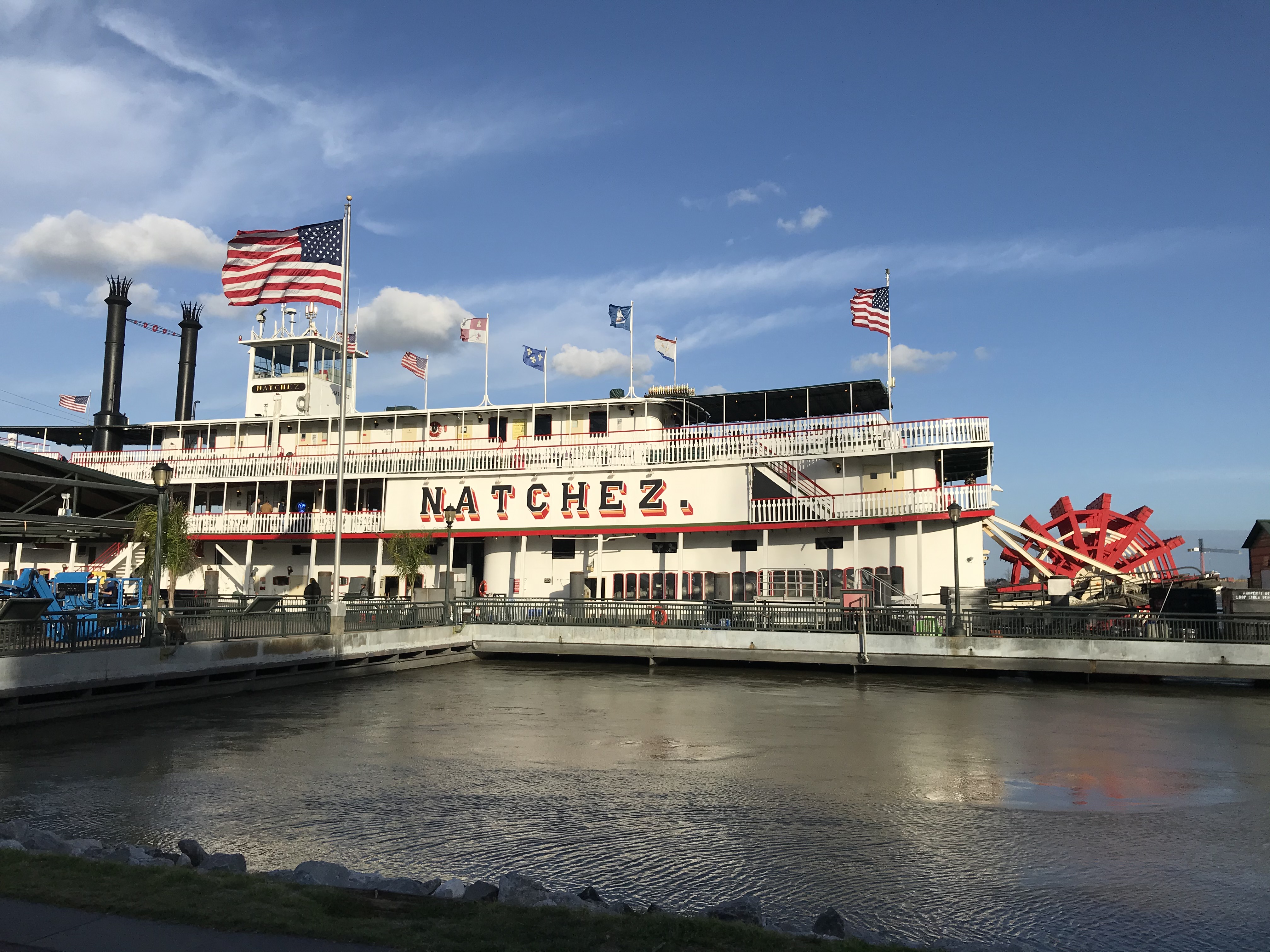 In the sea of good music from the bars and streets, there emerged this odd and very loud song that reminded me of a child learning to play the recorder. It just got louder and louder as I walked toward the river. I had been contemplating taking one of those sunset rides on a riverboat. Luckily this decision was made easier when I discovered the monstrous sound was coming from the steamboat Natchez itself- the steam from the boat powers an organ on which someone was playing songs. I’m playing fast and loose when I say ‘playing songs’ in this case. Money saved!