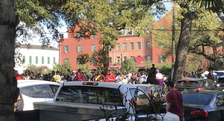 At one point I realized I had forgotten my phone charger cord, so went back to the van and decided to use this detour for a little siesta. The small joys of van living- your bed is always there! My little nap was limited to about 20 minutes due to a random parade going by with small floats, marching bands, and a few people on horses? Welcome to New Orleans. I got my stuff together, changed my shoes (big mistake. I got terrible blisters from forgetting socks. Ugh), and started back into town where I had another bloody mary from a cool gay bar which I enjoyed on the steps of some building while listening to street musicians. One of the main reasons aside from the spicy that I get these drinks is for the garnish. The garnish! It’s like getting a drink with a side of veggies. These both came with pickled green beans and olives- delish- but the 2nd came with pickled okra, too. I keep trying to get on board with this vegetable, but blegh. Even my love of all things pickled did not combat the slimy grossness of okra. It’s one of maybe a handful of vegetables I don’t love.