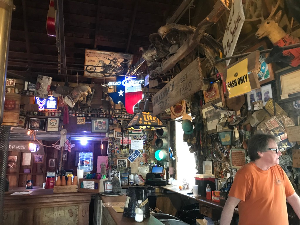I left Austin with a bag full of delicious take out from a taco place, and headed a few hours west through Texas Hill Country towards the town of Fredericksburg. Just before arriving I took a detour to the teensy weensy town of Luckenbach, made famous by a Waylon Jennings song with WIllie Nelson on the track. I 100% played it on repeat as I drove into town past the farms and fields, and it was the first song I heard the lone performer playing at the end of an open jam session at the Luckenbach store/bar/everything in town area. The saloon & dance hall also have hosted Willie Nelson’s 4th of July shows a number of times, had some recordings made there, basically a history of country music.