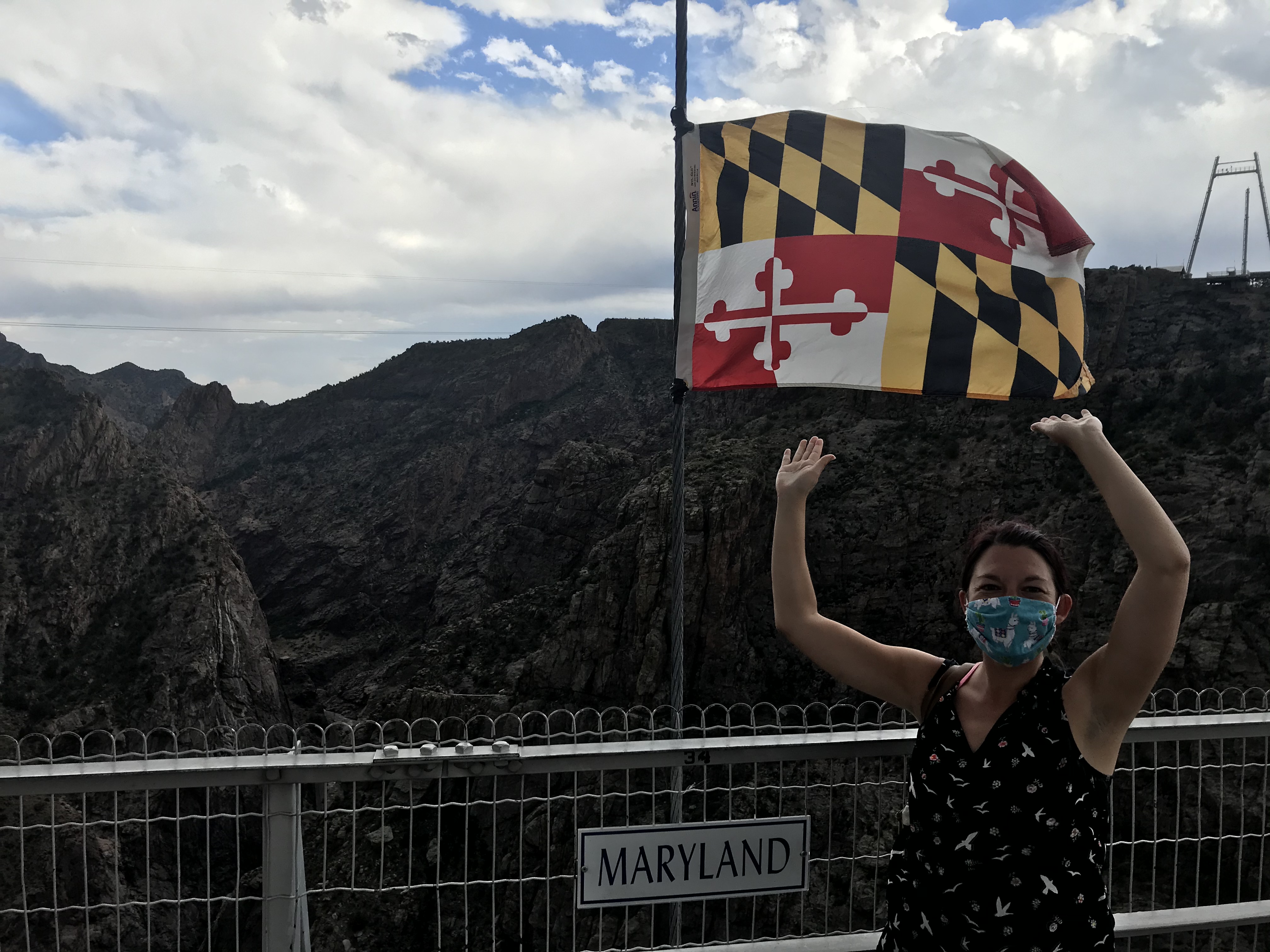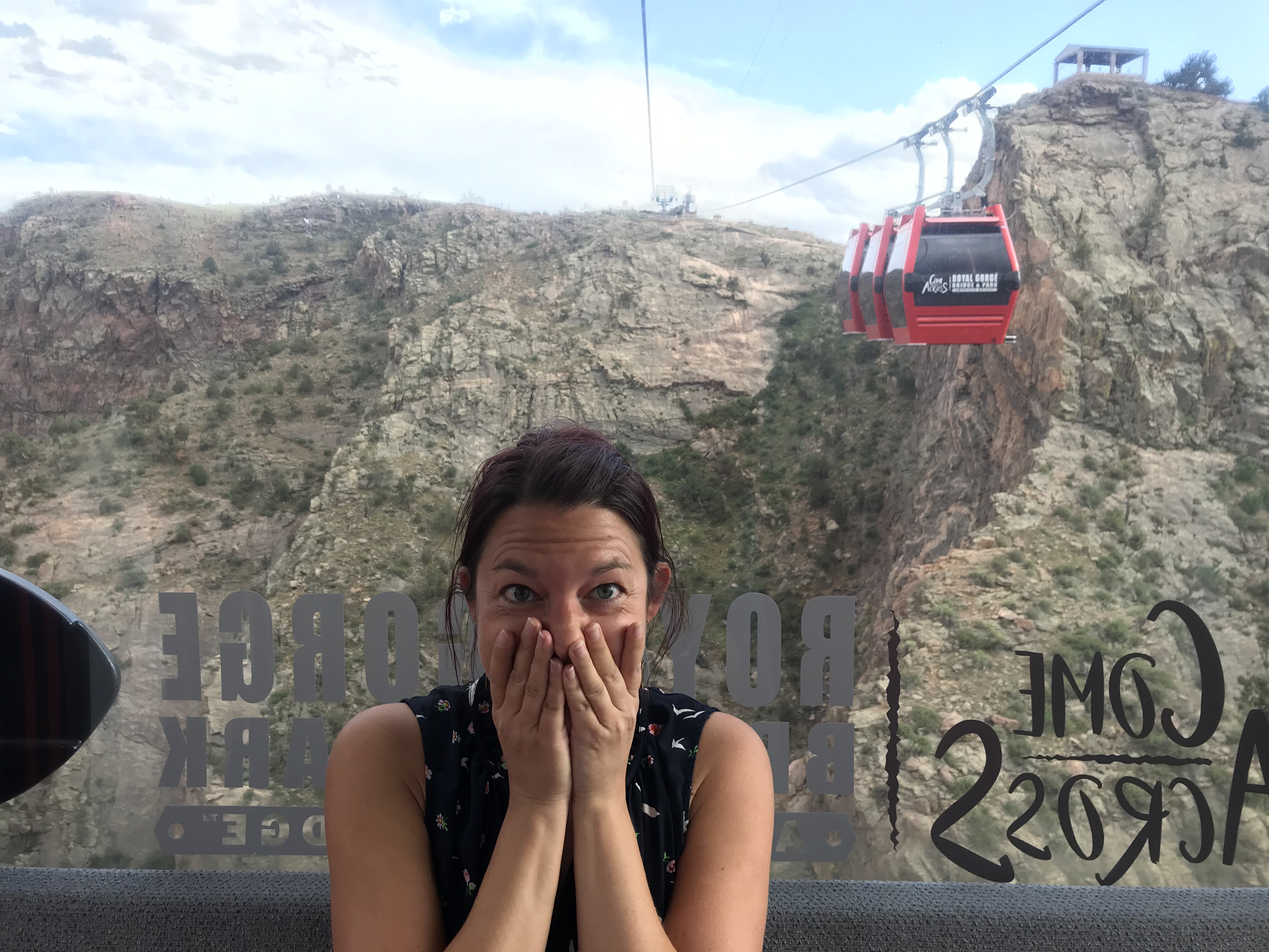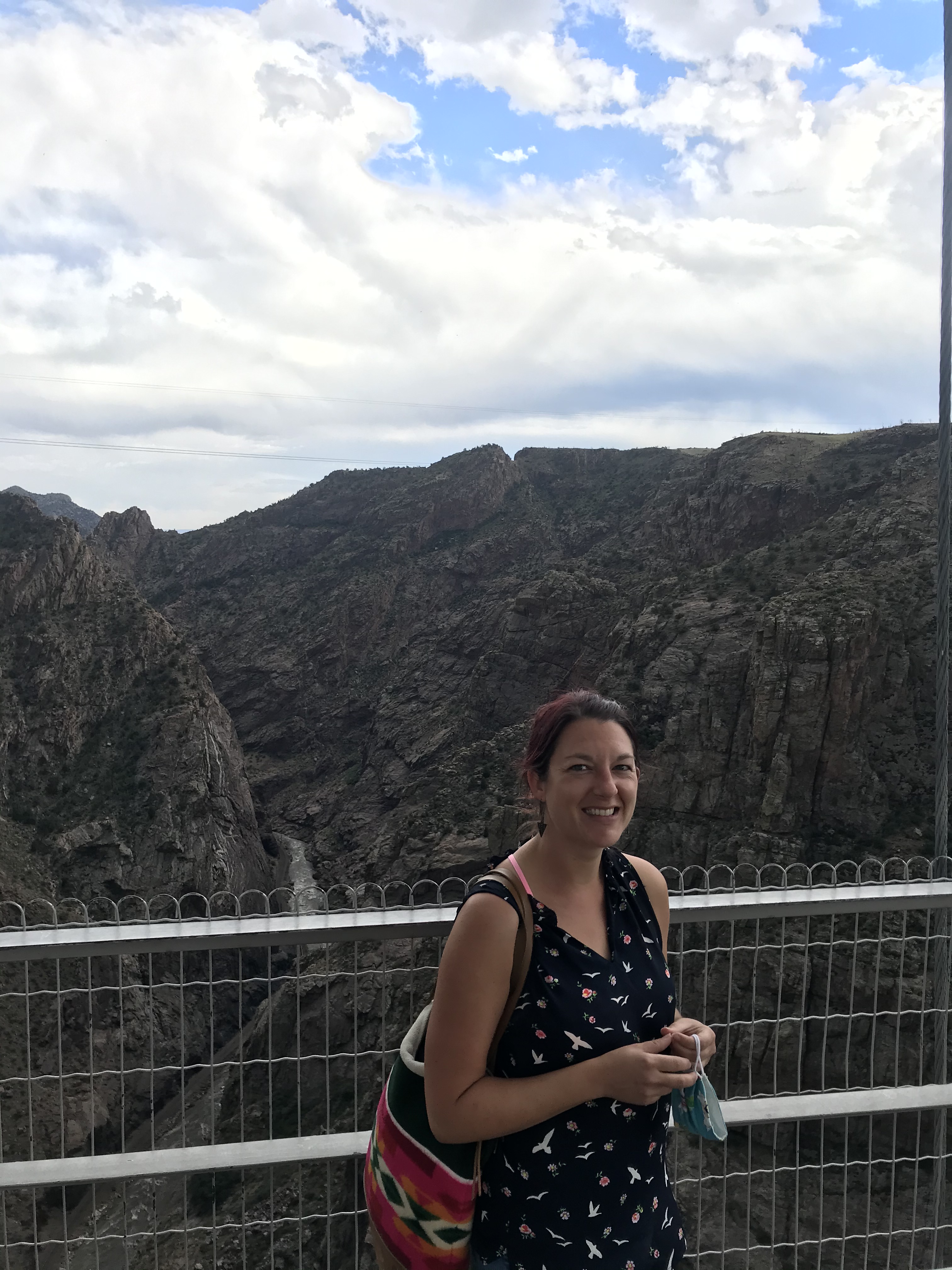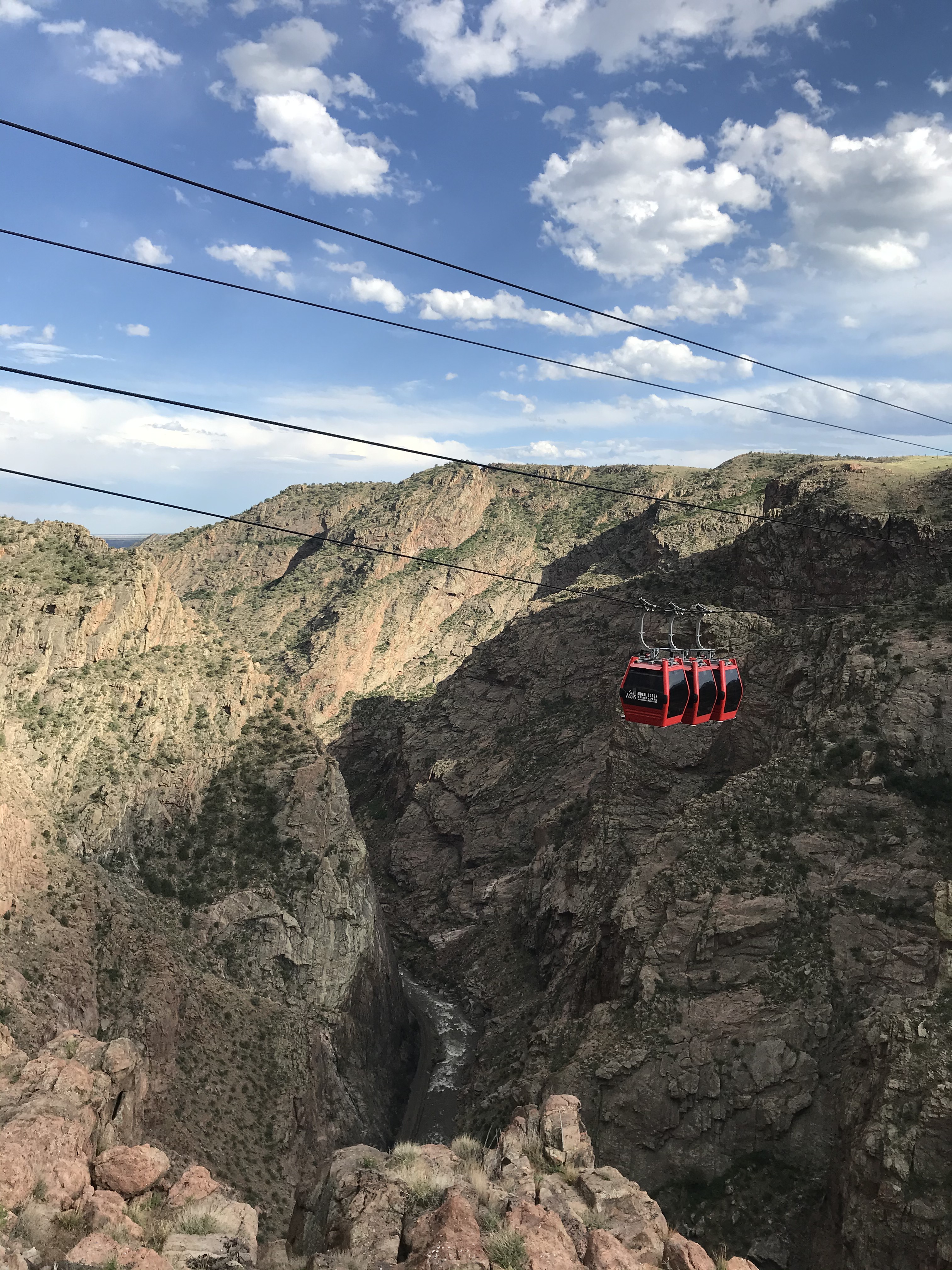 Further on we visited Royal Gorge bridge & park, where a bridge and gondola take you across the beautiful gorge (according to a sign there the difference between a gorge and a canyon is whether the top is significantly wider than the bottom) with the 50 state flags displayed along the length. It gave sweeping views despite the strong wind that day. When we arrived there was a thunderstorm blowing through the area a few miles away, so the gondola wasn’t running until we were about to leave. Good luck for us! It was rockier than usual but a lovely experience.
