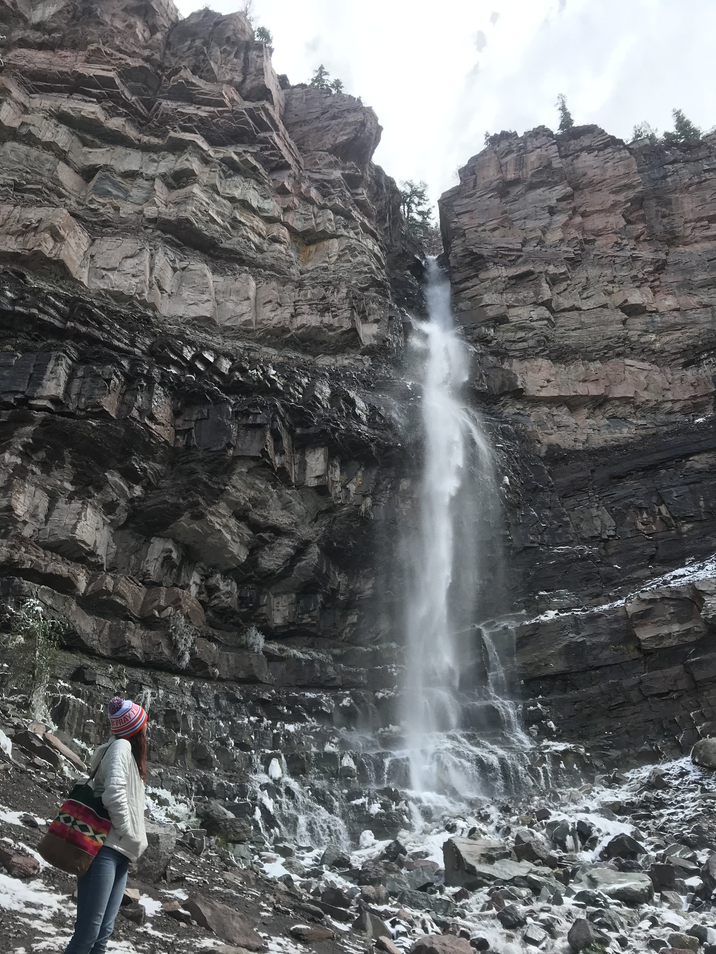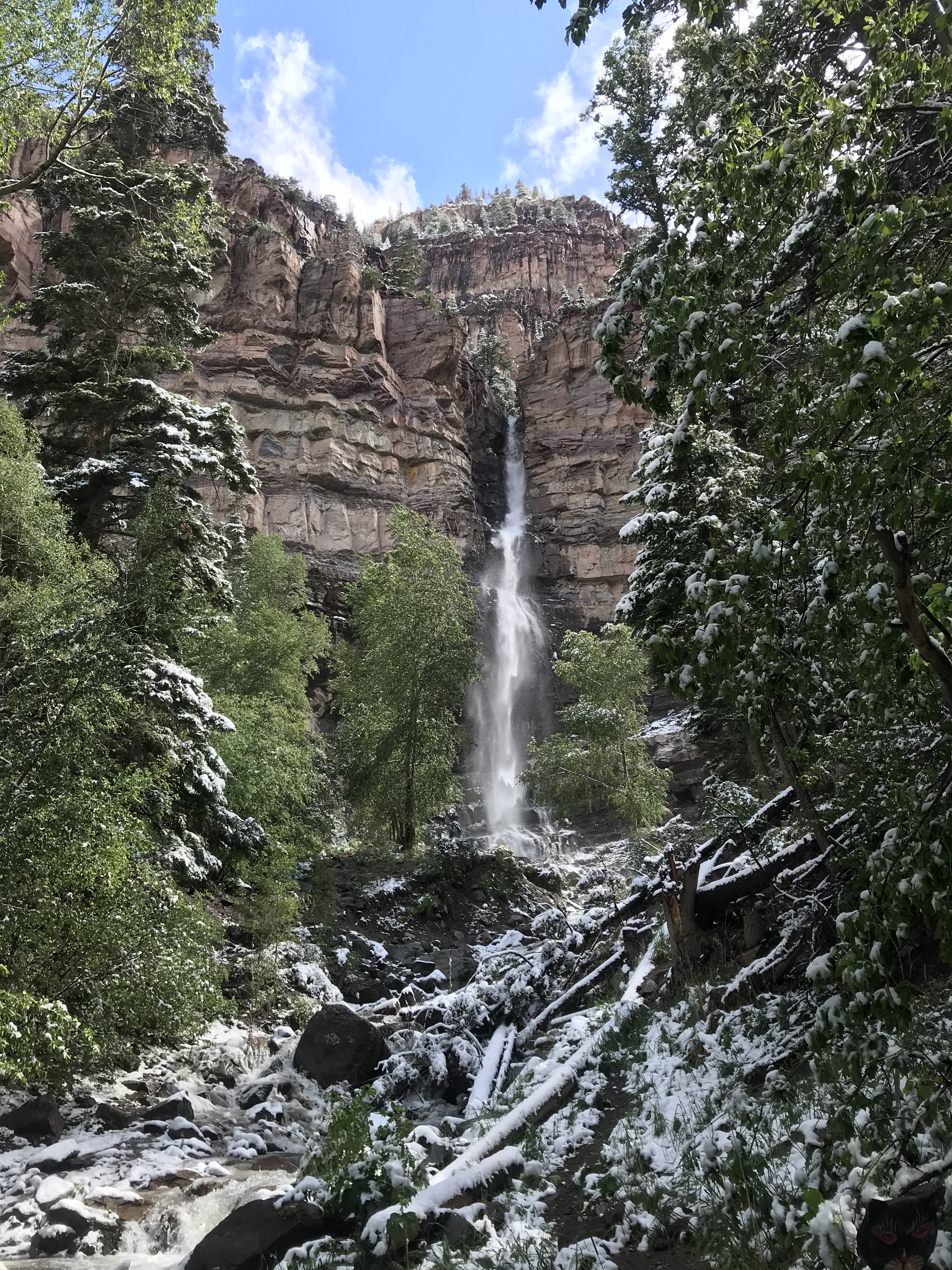 The next day there was snow on the car and grass, and a lot in the mountains, but the roads had melted off in the early morning sunshine by the time we got moving. Kevin and I explored the town surrounded by glistening snowy mountains and walked up to Cascade Falls, wandered through Box Canyon park, and got to see some of the infrastructure on the steep canyon walls which are sprayed down daily in winter to create a world class ice climbing area. Apparently they have competitions and festivals there at the Ice Park which sounded super cool to watch but terrifying to do.