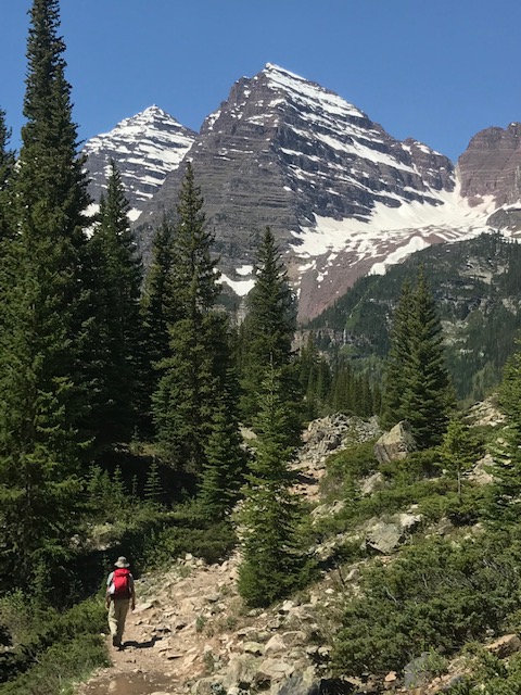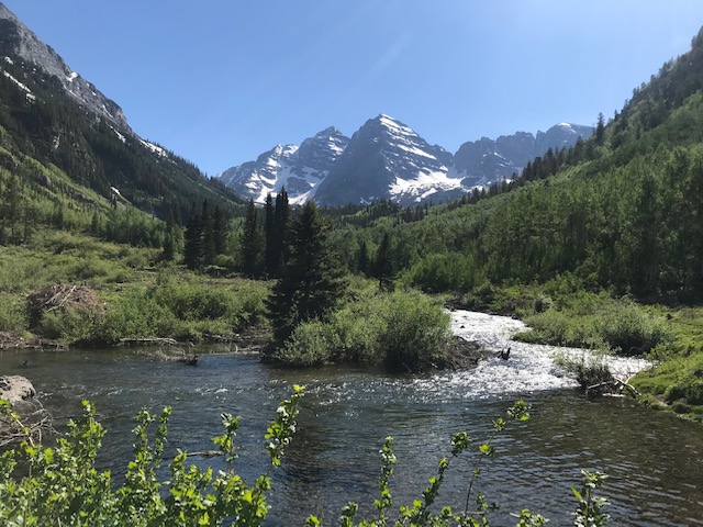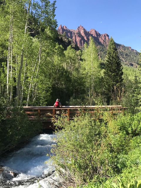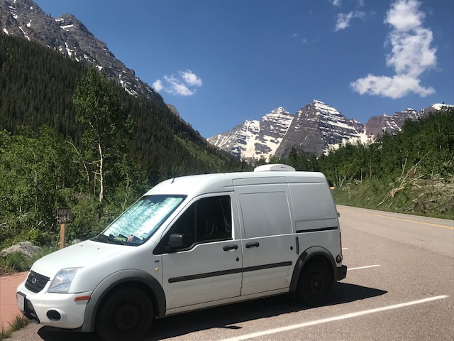 In Aspen we spent a sunny afternoon at the John Denver Sanctuary looking at the engraved quotes on stones, sitting by the streams and flowers, and watching some baby ducklings. It being a Saturday in Aspen, everywhere nearby to camp was full so we did a hotel night with some good Thai food and a nice shower in Basalt before heading back into town first thing Sunday morning to grab a first-come campsite reservation by the Maroon Bells.