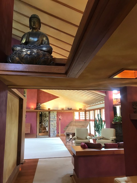 The home itself was really cool to tour since it was one of the spaces Wright was able to take all his ideas to full fruition without any pesky homeowner adding opinions. There were items from his extensive Japanese art collection, furniture he designed for the space, the typical long, running windows, and geometric lines everywhere. I think my favorite part was the surrounding gardens, but the whole place was memorable (not to mention the stories of multiple fires and a murder).