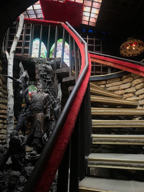 After that classy morning of art and architecture, I of course needed to get back to my own level and headed to a spot called the House on the Rock. I didn’t do the level of research this place warrants before touring because I was unprepared for how much crazy this place holds. I guess originally this was someone’s home they built on and around the rock face on a high outcropping, and this section of the site is super dark with a ’70s rec room vibe but filled with super random art and decor. From the original home additions came like a water wheel, a Japanese-inspired garden, a series of walkways leading up to the home and culminating in an Infinity Hall leading out over the cliff, and then a whole warehouse of crazy.