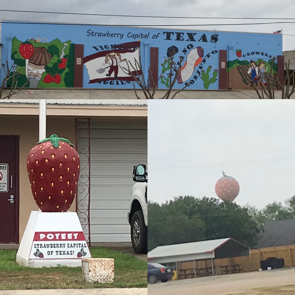 On my way back from the coast towards San Antonio I made a quick side trip to the strawberry capital of Texas to see their strawberry water tower and all their other proud displays. If only it had been strawberry season!! I would have loaded up and gone full glutton. As it was at this time of year I saw maybe one person out and about and zero activity in any shop or stand. Already missing the beach, but excited to see what San Antonio had in store and just listened to Ali Wong’s audiobook since my evening with her was off the table 😦