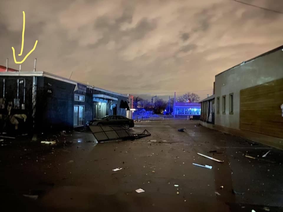 Fast forward to later that evening when I’d arrived at my next destination, some heavy thunderstorms came through that woke me up a few times and resulted in a small leak on my back door- not a huge deal but something I though I’d fixed by replacing my back top brake light, but now think maybe it’s an old seal along the top of the door. Anyway, not the point. The point is that when I woke up in the morning it was to some kind texts and weather alerts on my phone that a string of tornadoes had come through Tennessee and hit Nashville hard, in some of the areas I’d been parked and eaten the days before. The pic above with the arrow was put up online by the restaurant with the turning noodles of their alley & parking area and neighboring building that got messed up. So even more glad I didn’t stay for that show. Sometimes the universe is on your side.